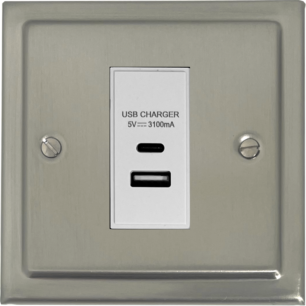 Satin Nickel USB Charger (USB-A and USB-C) (1 Gang/White Insert) - G+H TSN41W