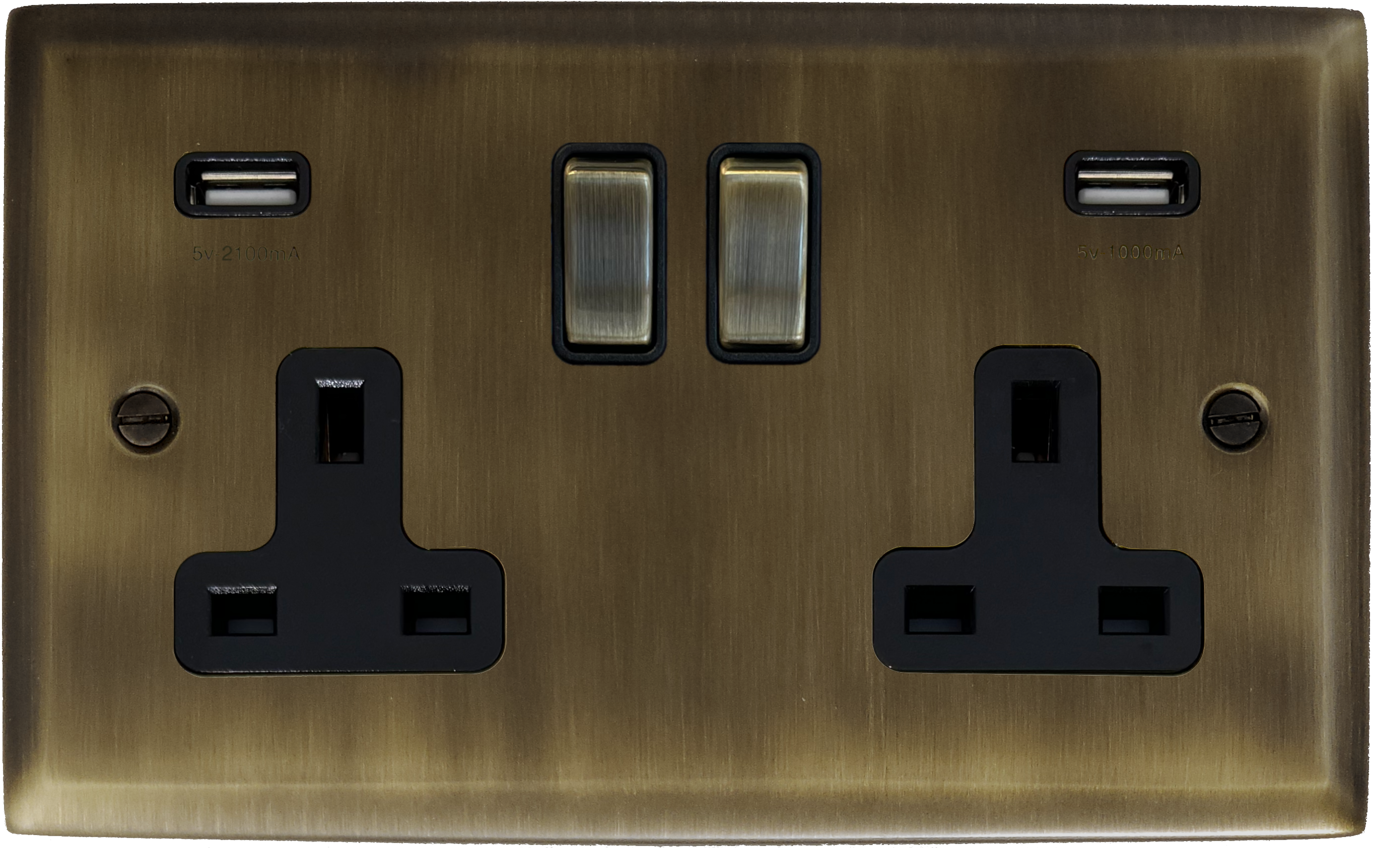 Spectrum Antique Brass Double Socket with USB (Brass Switch) - G+H SAB3910