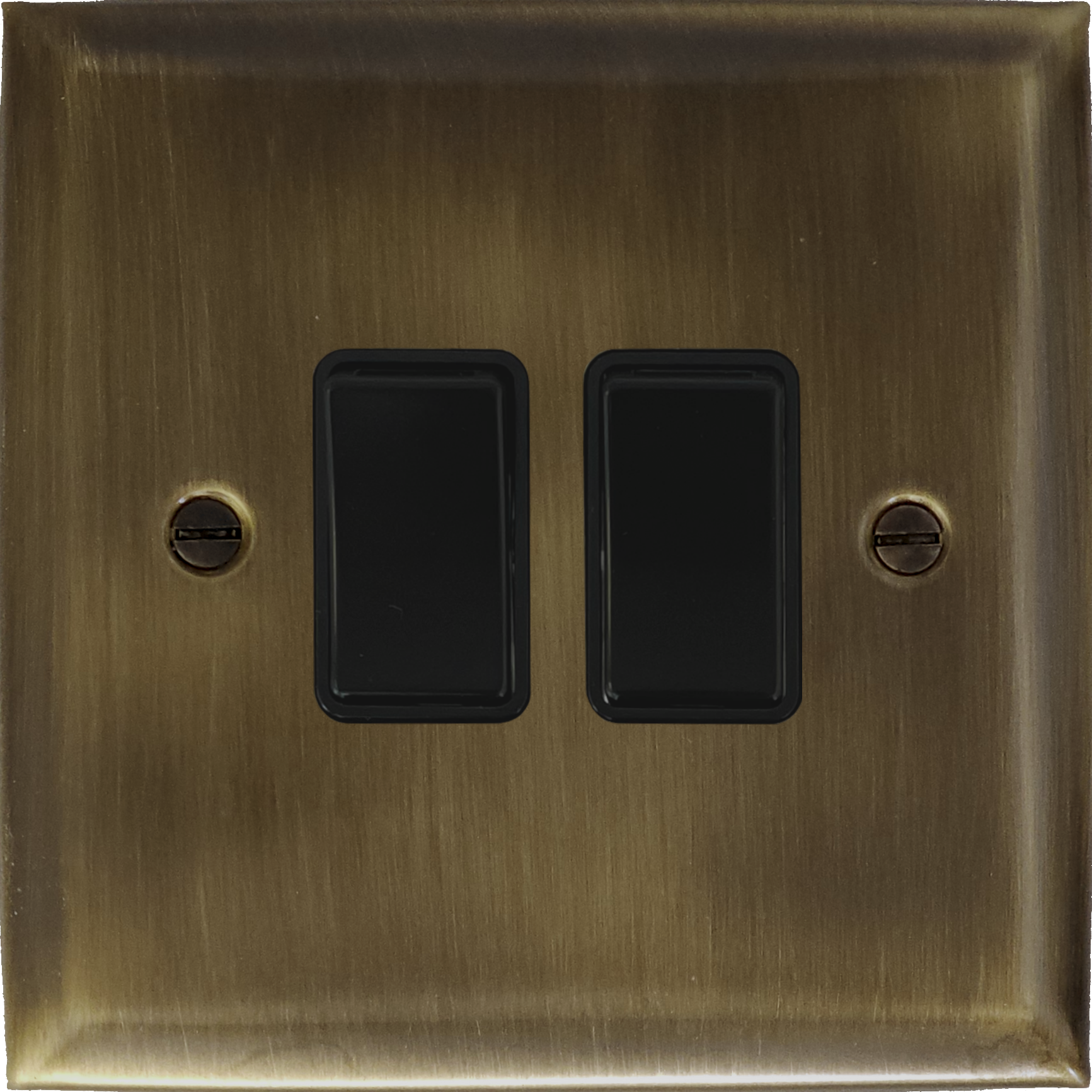Spectrum Antique Brass Light Switch (2 Gang/Black Switches) - G+H SAB2B