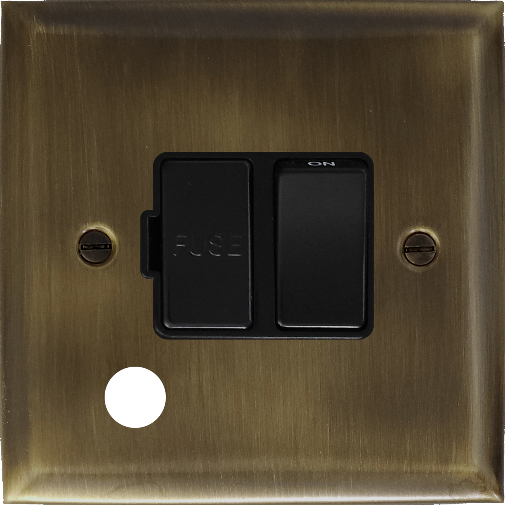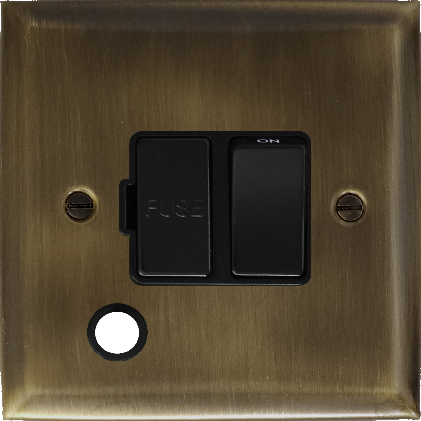Spectrum Antique Brass Switched Fused Spur with Flex Outlet (Black Switch) - G+H SAB56B