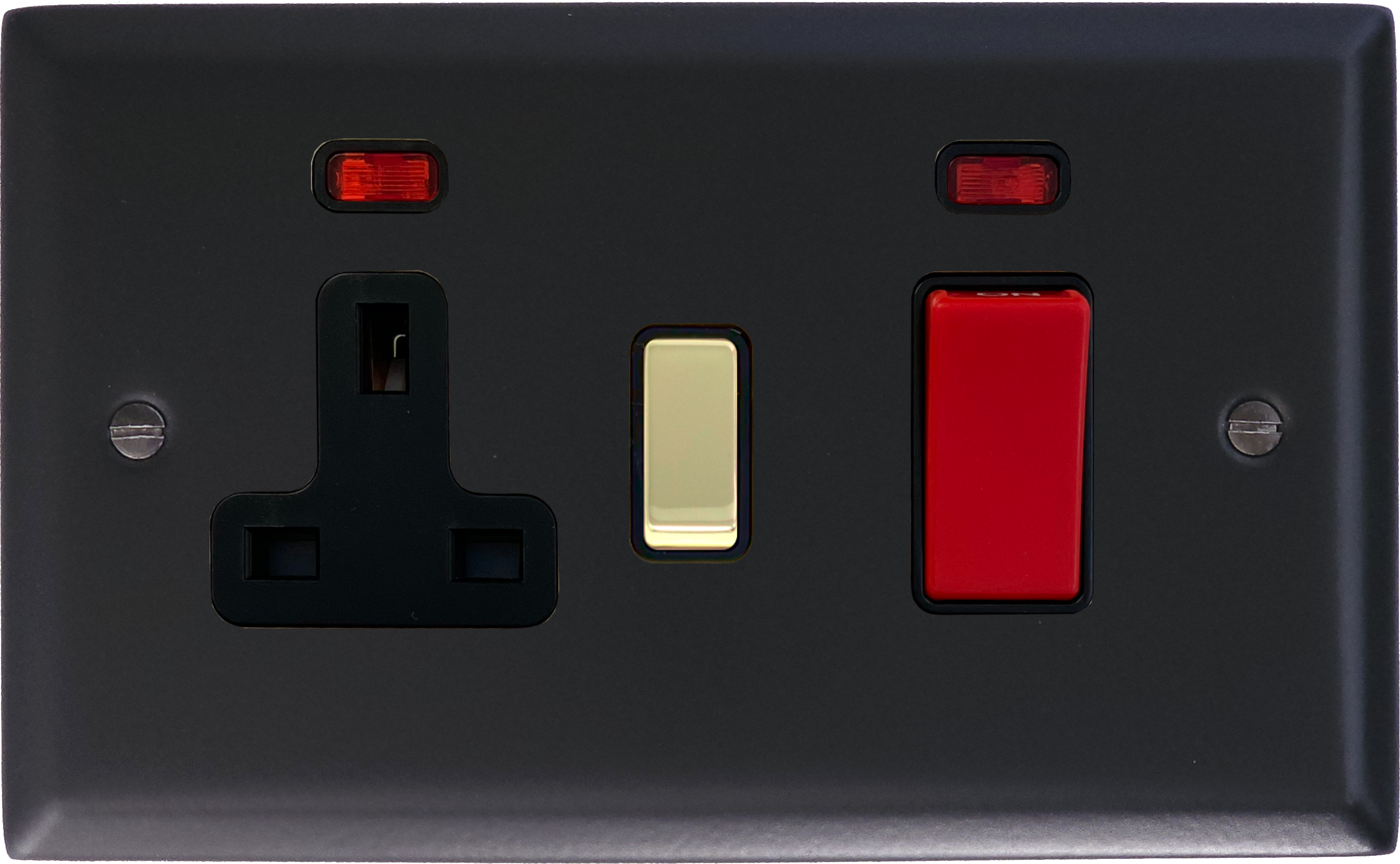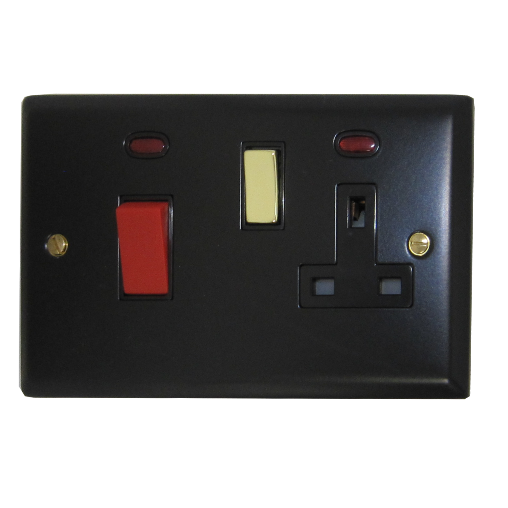 Spectrum Flat Black Cooker Switch with Socket (Polished Brass Switch) - G+H SFB329-PB