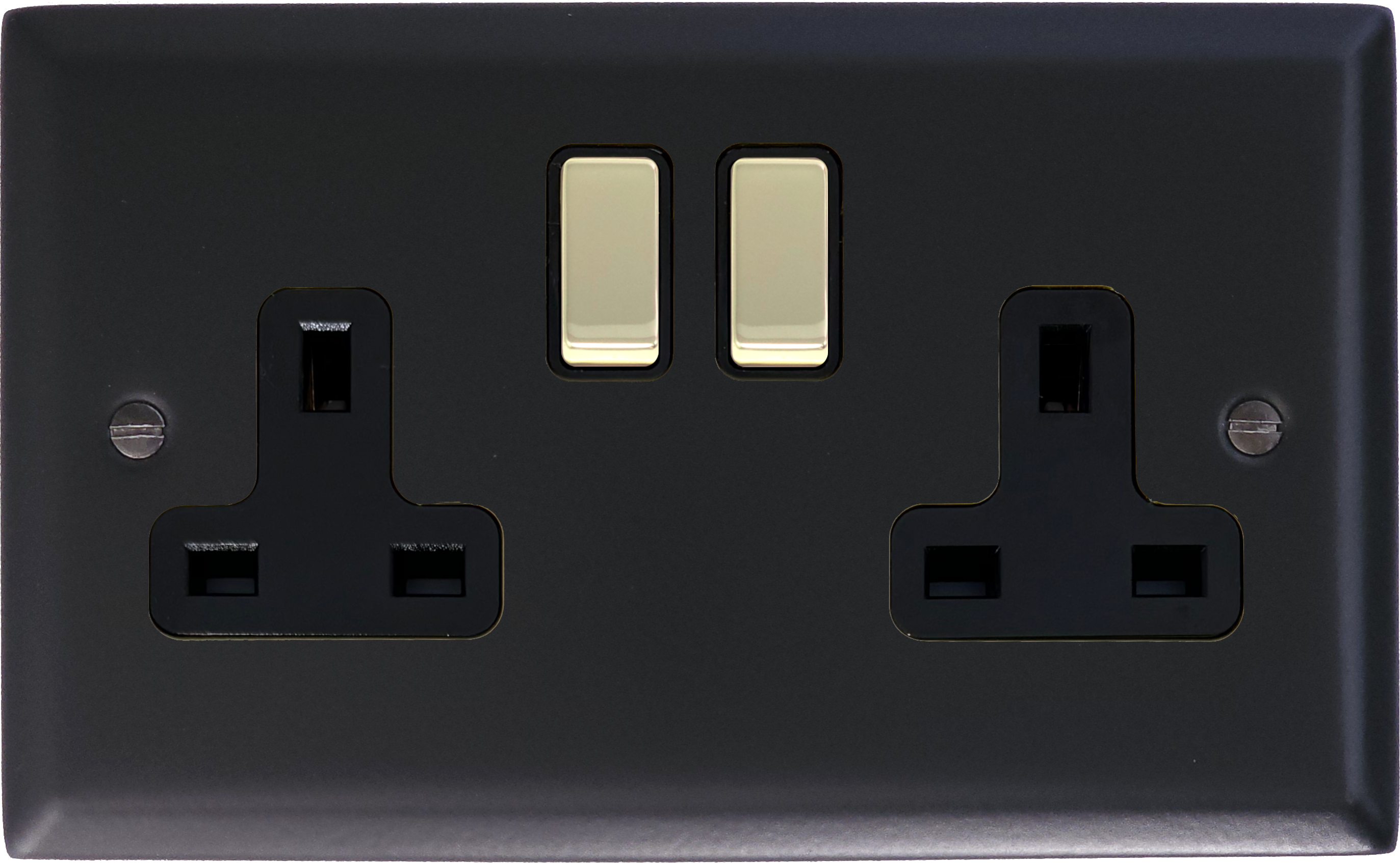 Spectrum Flat Black Double Socket (Polished Brass Switches) - G+H SFB310-PB