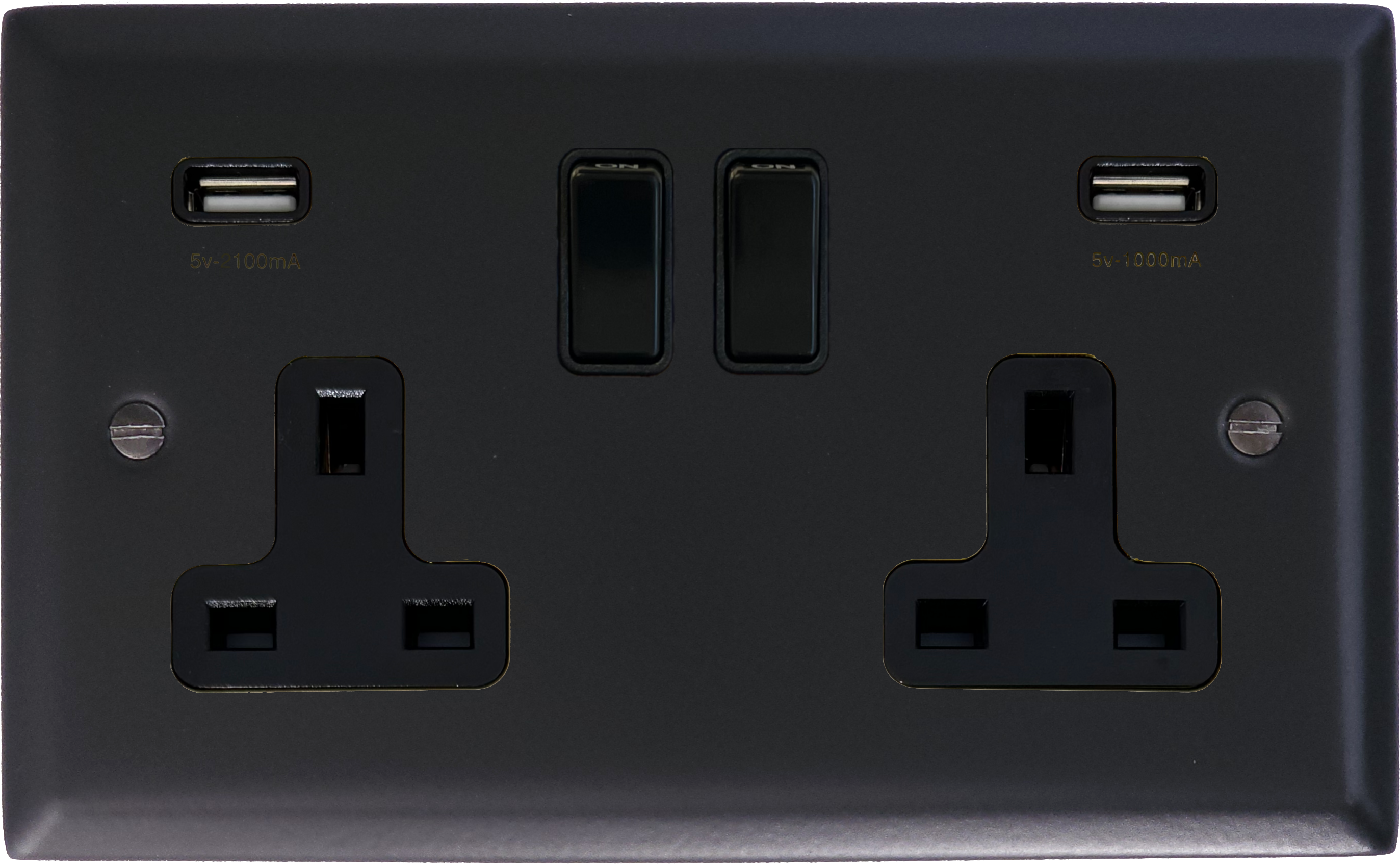 Spectrum Flat Black Double Socket with USB - G+H SFB910B