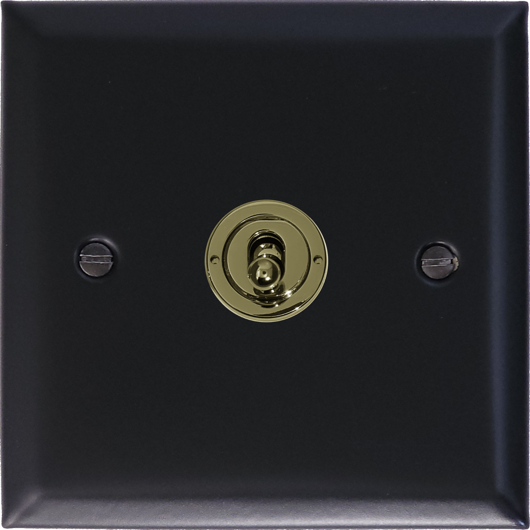 Spectrum Flat Black Intermediate Toggle Switch (Polished Brass Toggle)