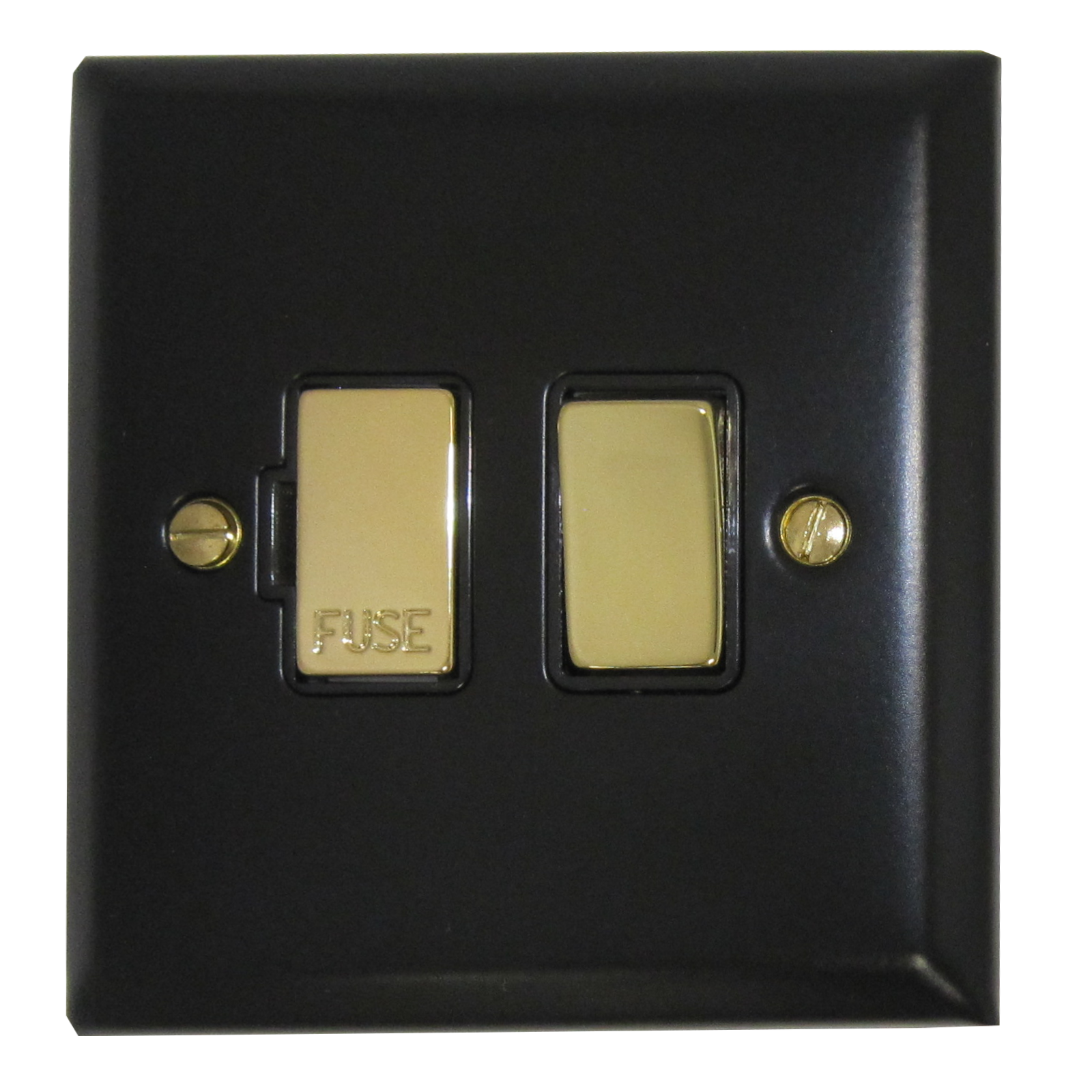 Spectrum Flat Black Switched Fused Spur (Polished Brass Switch)