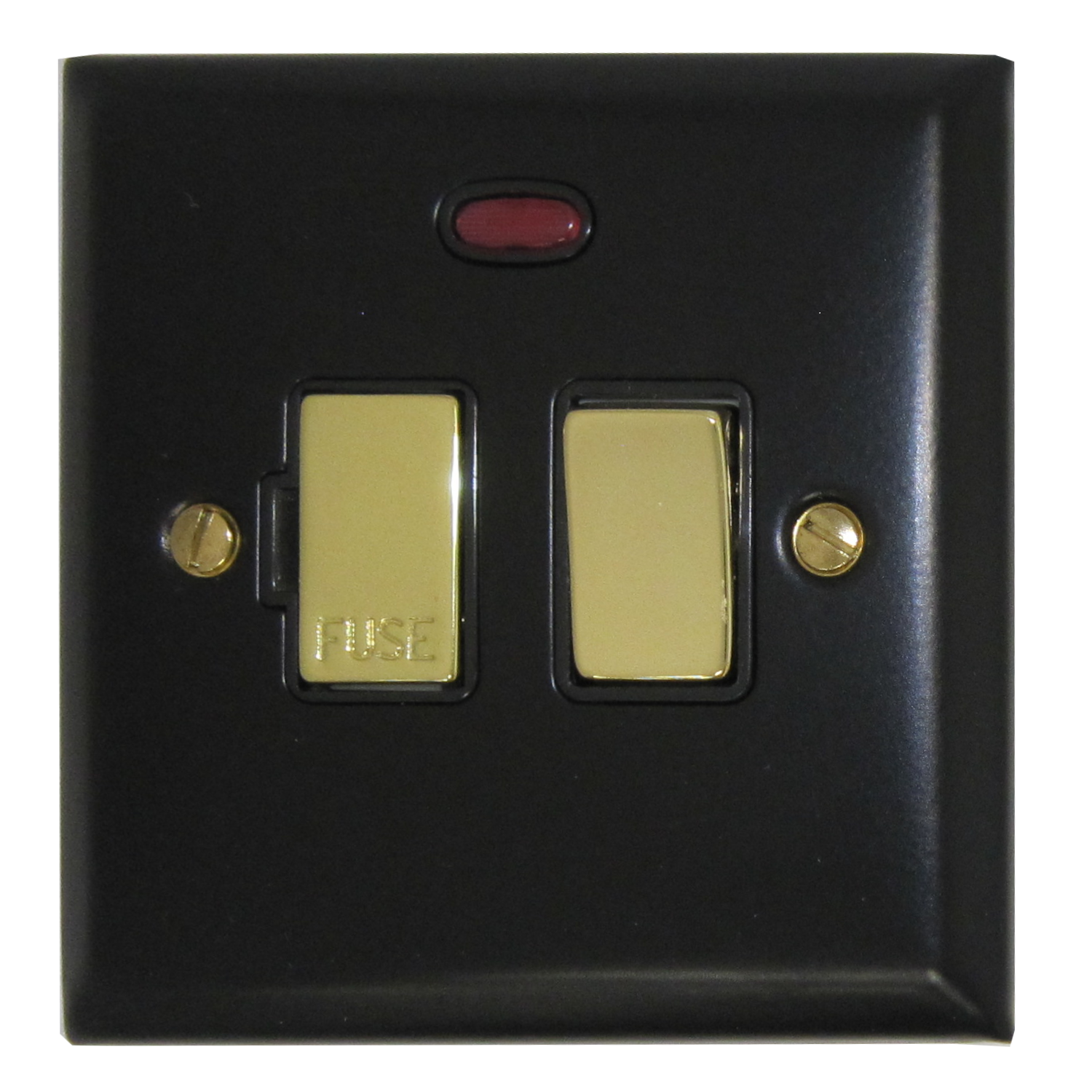 Spectrum Flat Black Switched Fused Spur with Neon (Polished Brass Switch) - G+H SFB327-PB