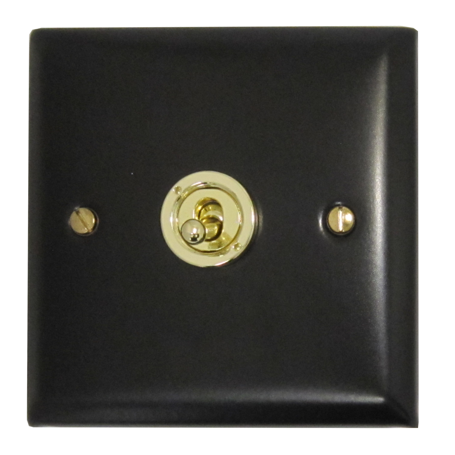 Spectrum Flat Black Toggle Grid Plate (1 Gang/Polished Brass Toggles) - G+H SFB81-PB