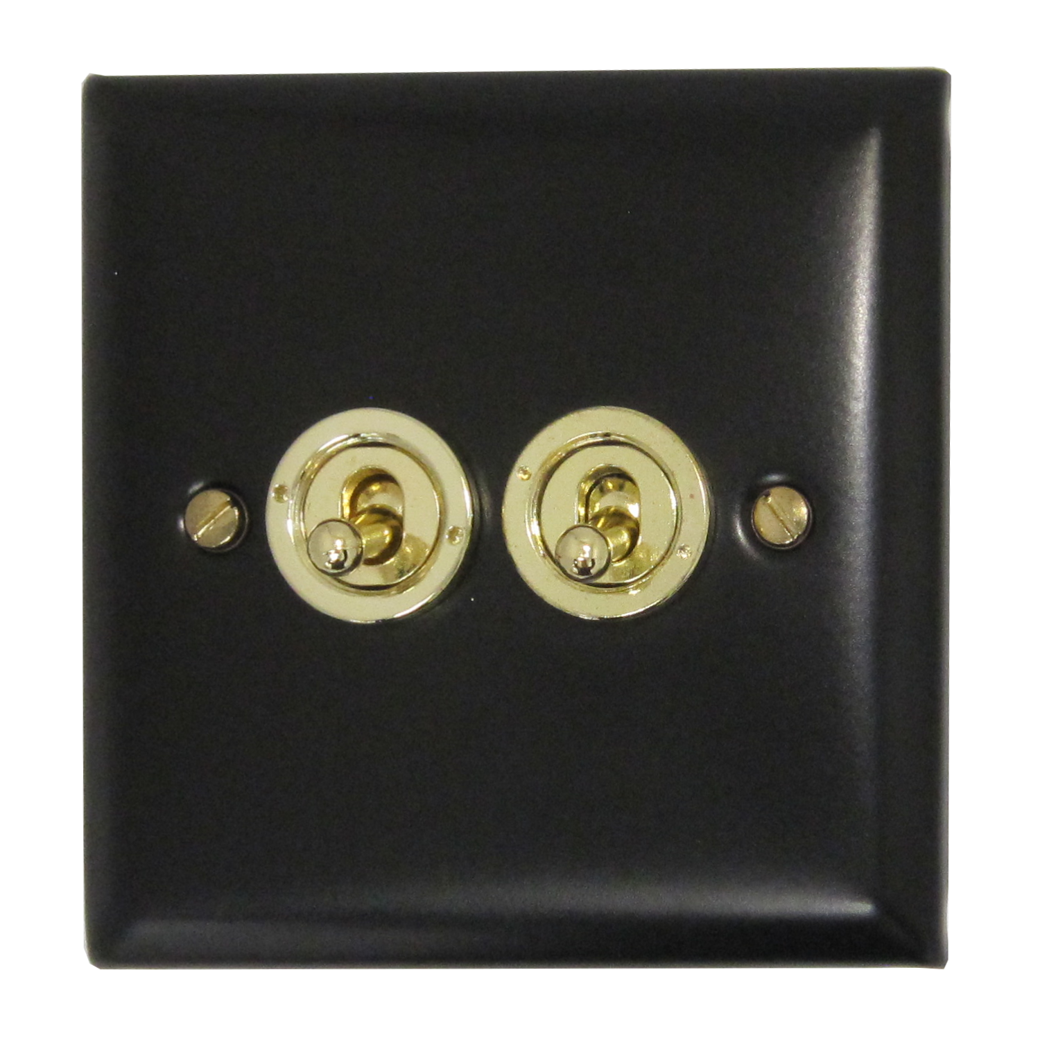 Spectrum Flat Black Toggle Grid Plate (2 Gang/Polished Brass Toggles) - G+H SFB82-PB