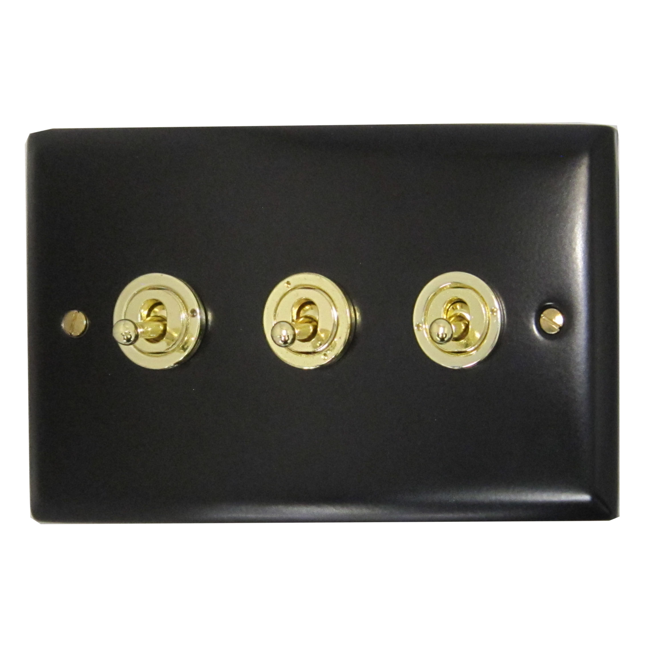 Spectrum Flat Black Toggle Grid Plate (3 Gang/Polished Brass Toggles) - G+H SFB83-PB
