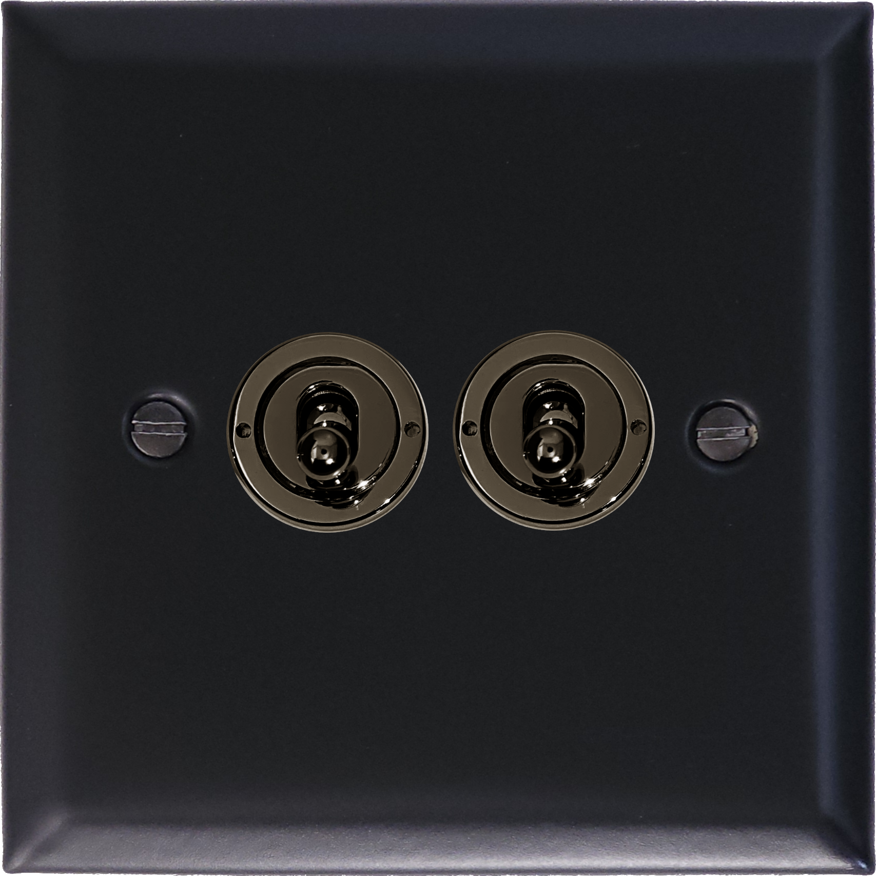 Spectrum Flat Black Toggle Switch (2 Gang/Black Nickel Toggle) - G+H SFB382-BK