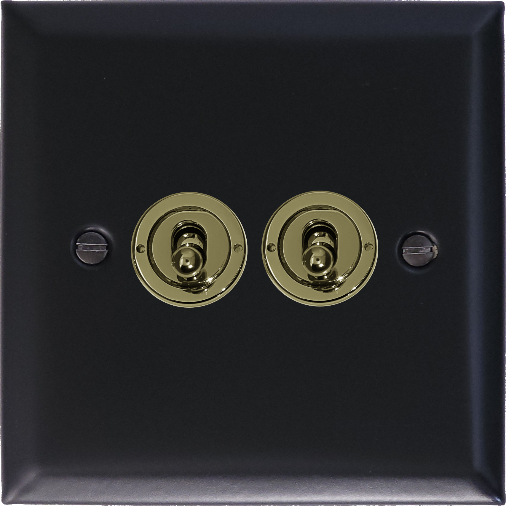 Spectrum Flat Black Toggle Switch (2 Gang/Polished Brass Toggles)