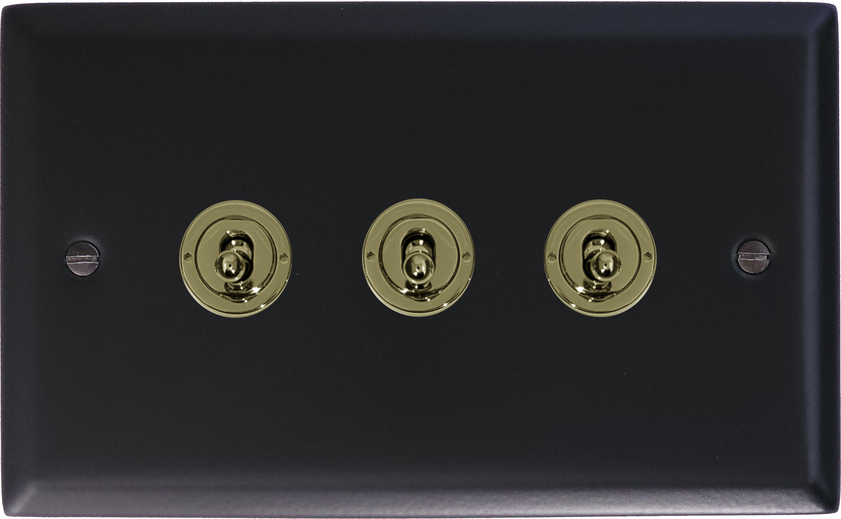 Spectrum Flat Black Toggle Switch (3 Gang/Polished Brass Toggles)