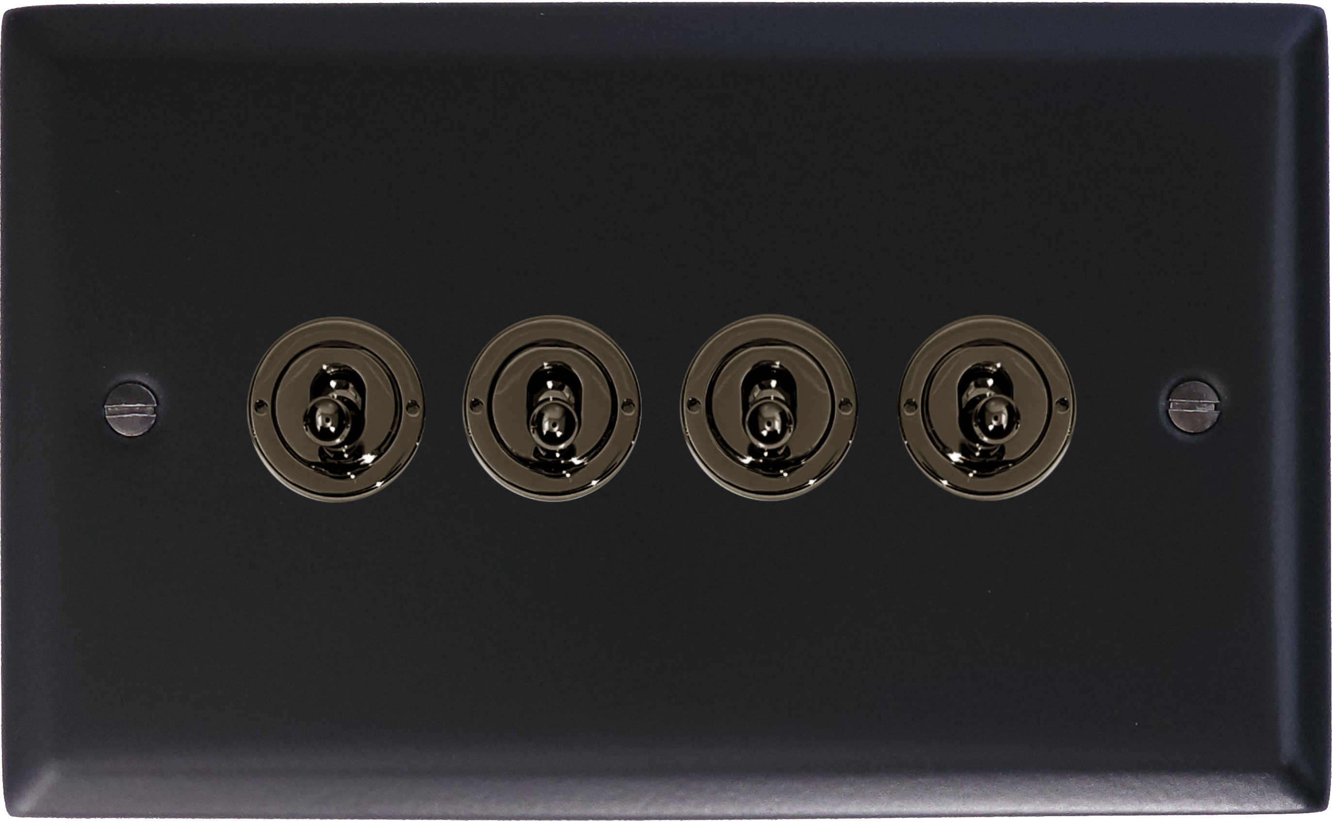 Spectrum Flat Black Toggle Switch (4 Gang/Black Nickel Toggle) - G+H SFB384-BK