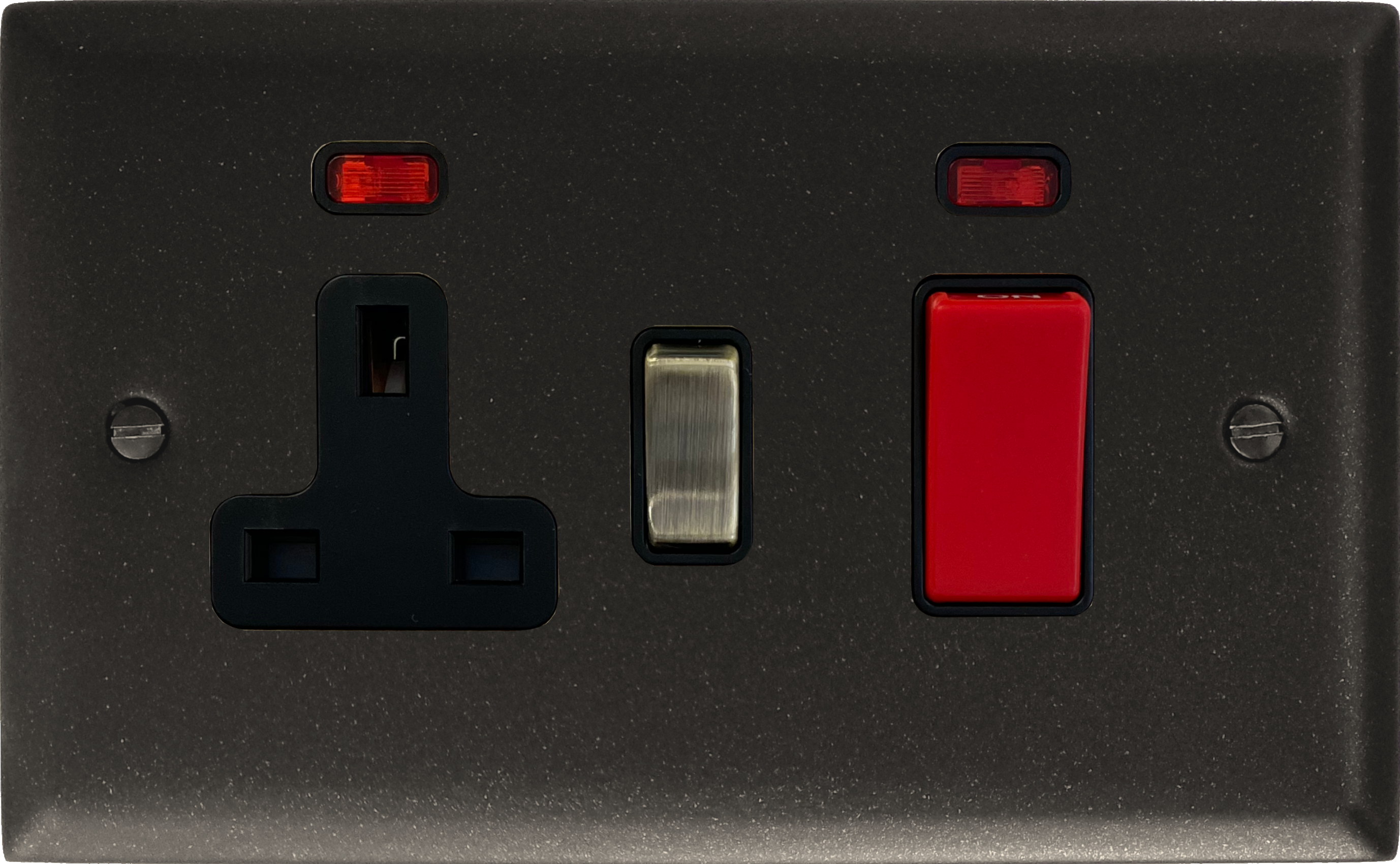 Spectrum Graphite Cooker Switch with Socket (Black Nickel Switch) - G+H SG329