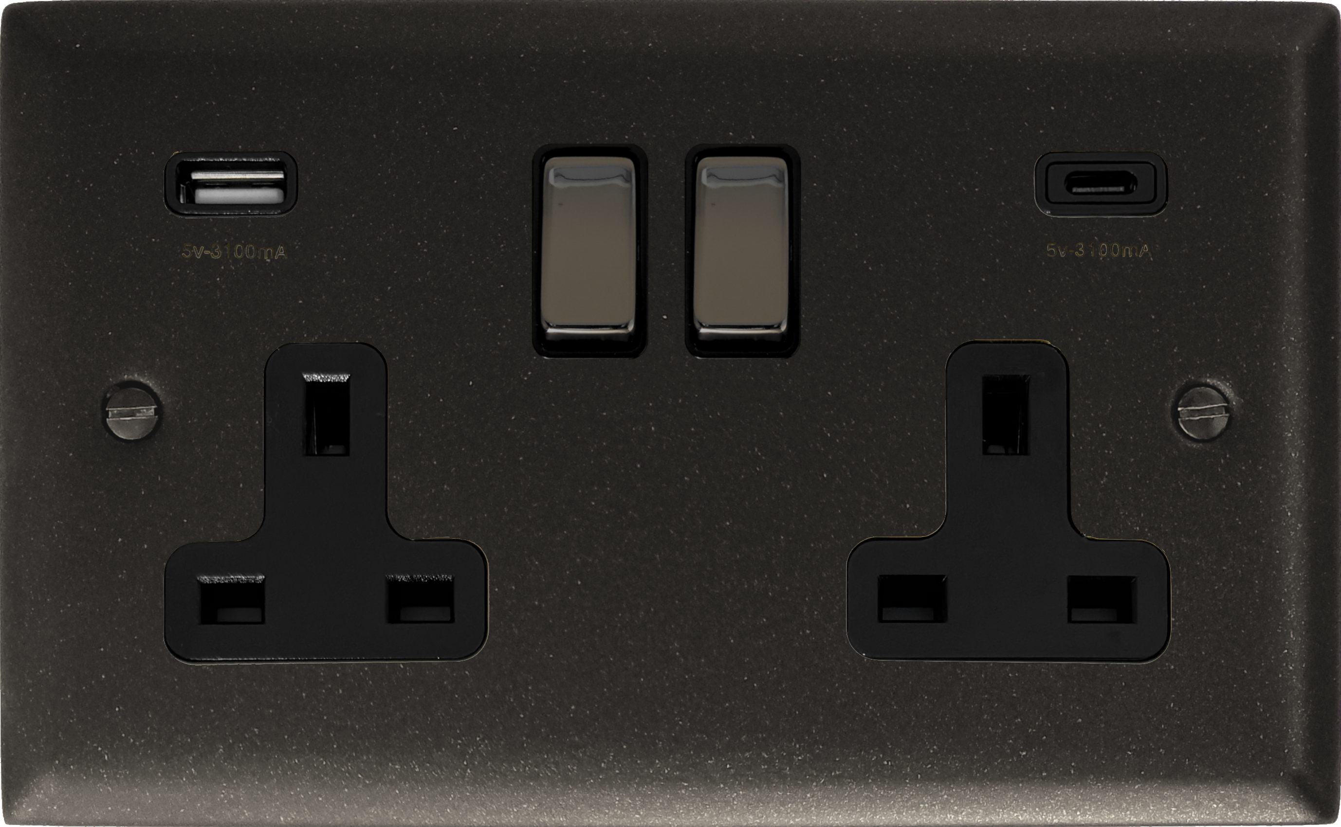 Spectrum Graphite Double Socket with USB (2 Gang/USB-A and USB-C/Black Insert/Black Nickel Switch)