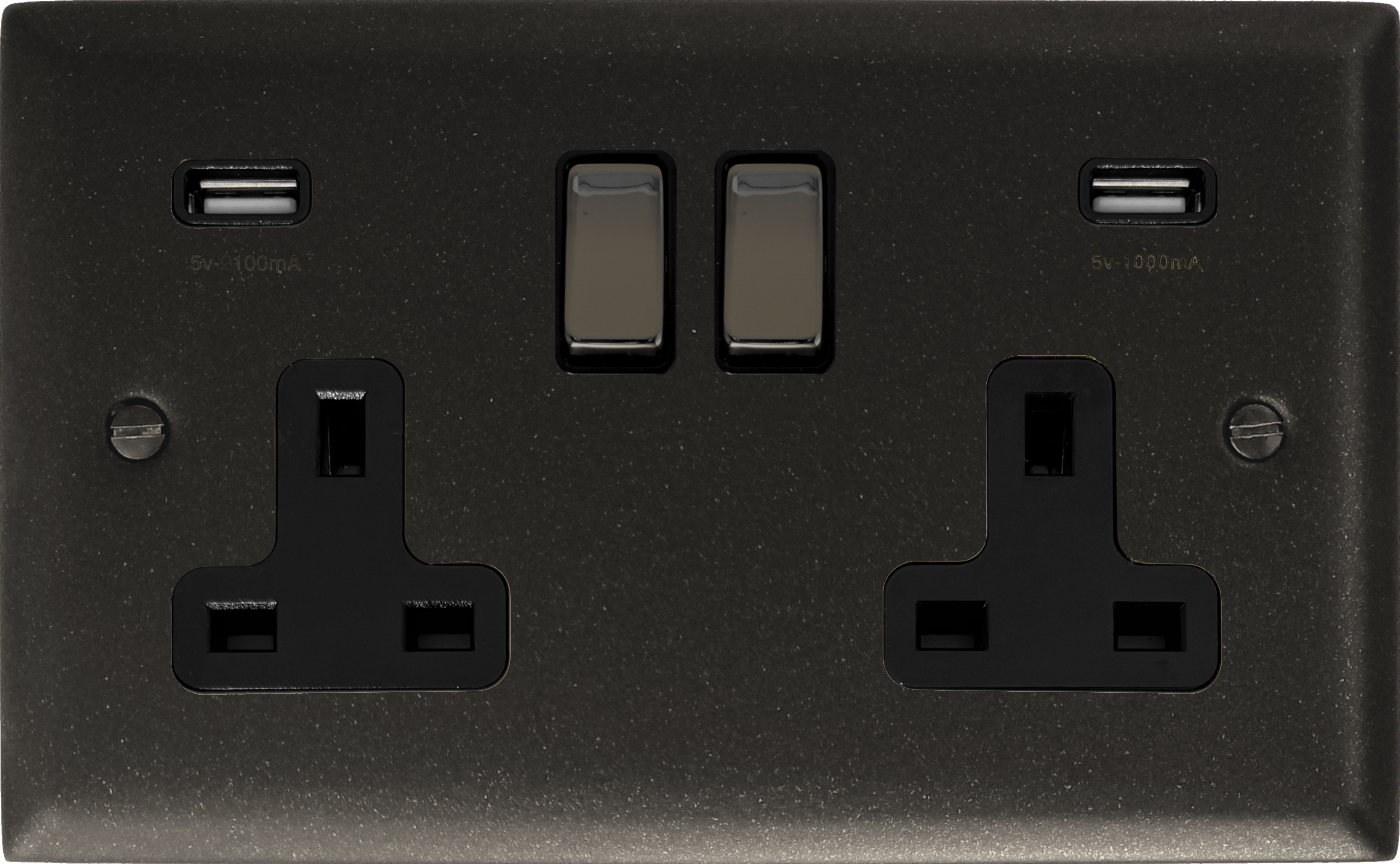 Spectrum Graphite Double Socket with USB (Black Nickel Switches) - G+H SG3910