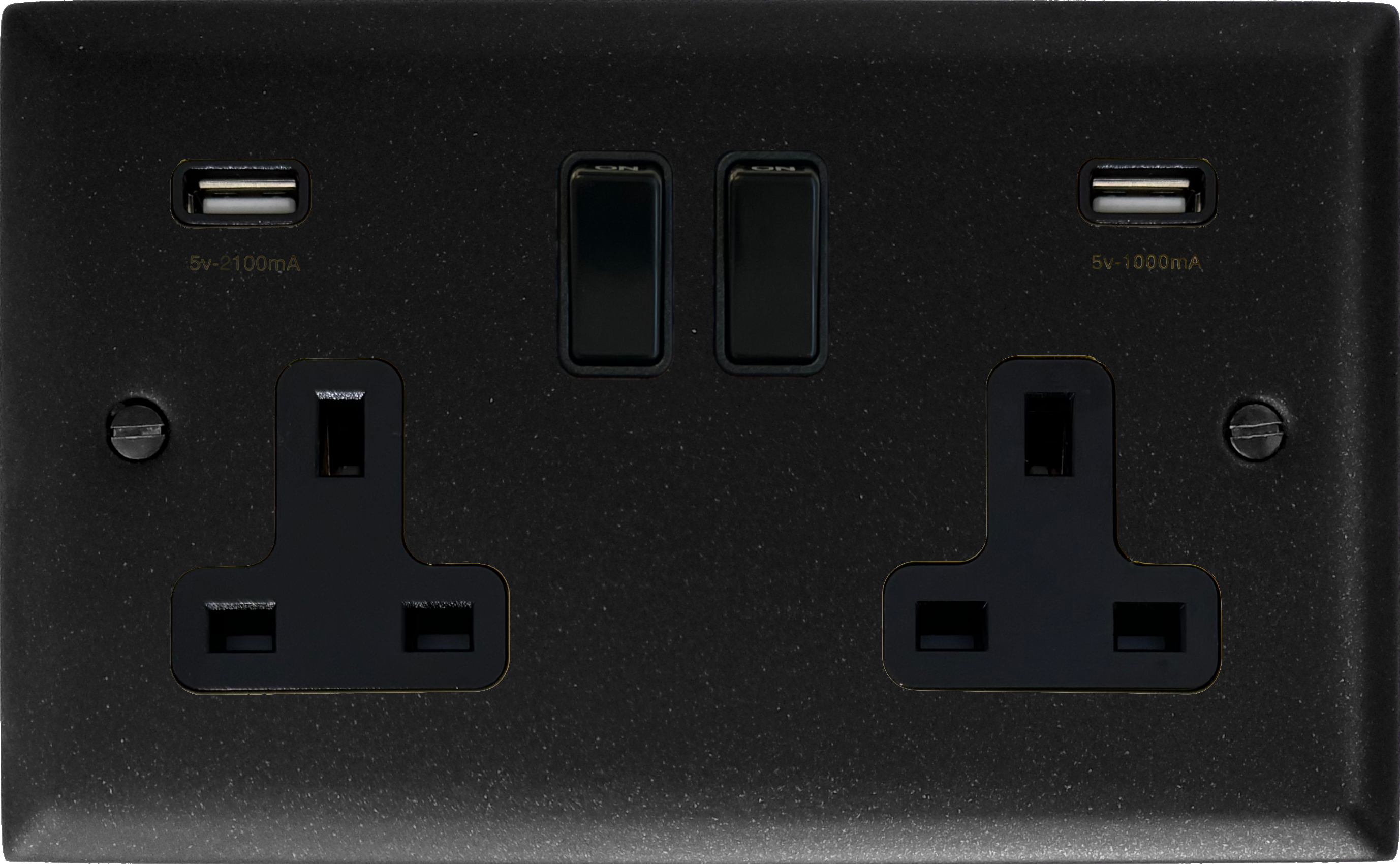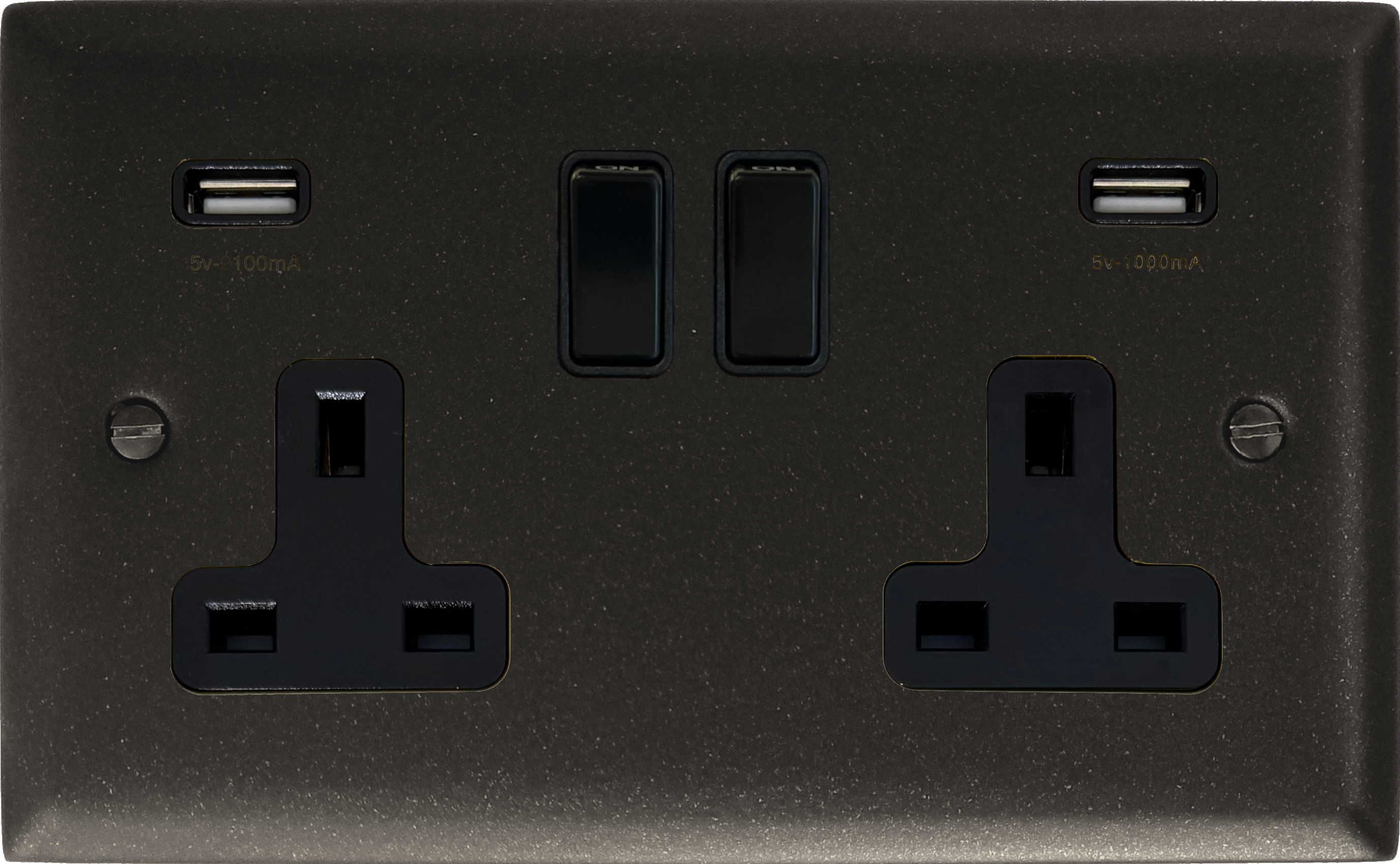 Spectrum Graphite Double Socket with USB (Black Switches) - G+H SG910B