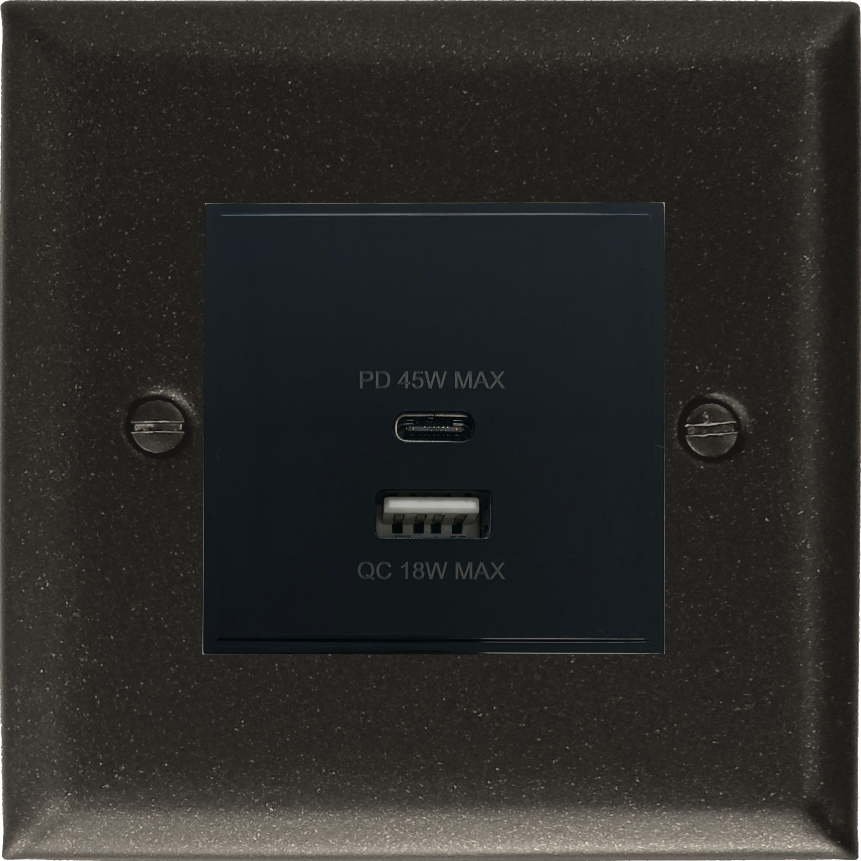 Spectrum Graphite USB Charger (Dual USB A + C Quick Charge) (1 Gang) - G+H SG43B
