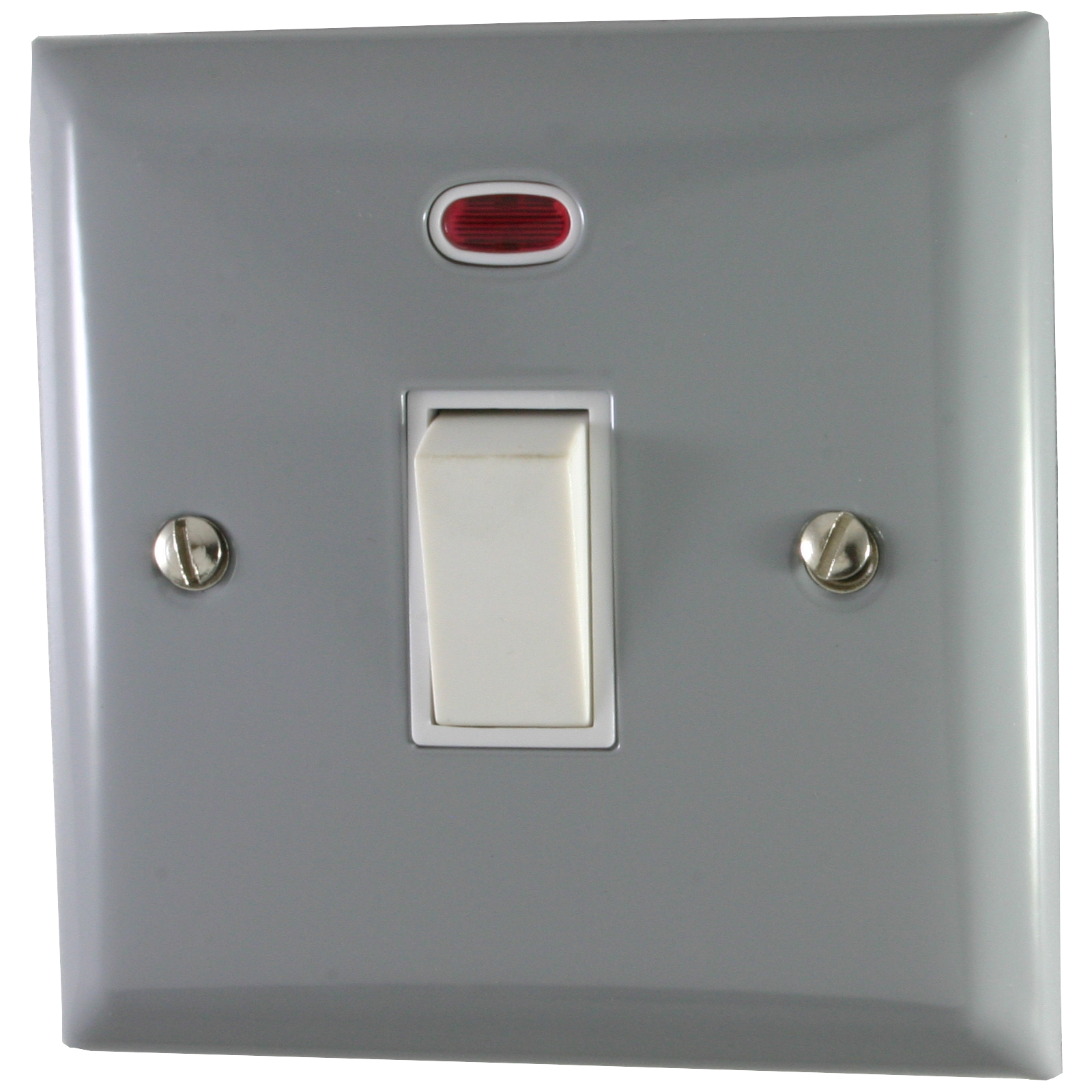Spectrum Light Grey 20A DP Switch with Neon (White Switch) - G+H SLG26W