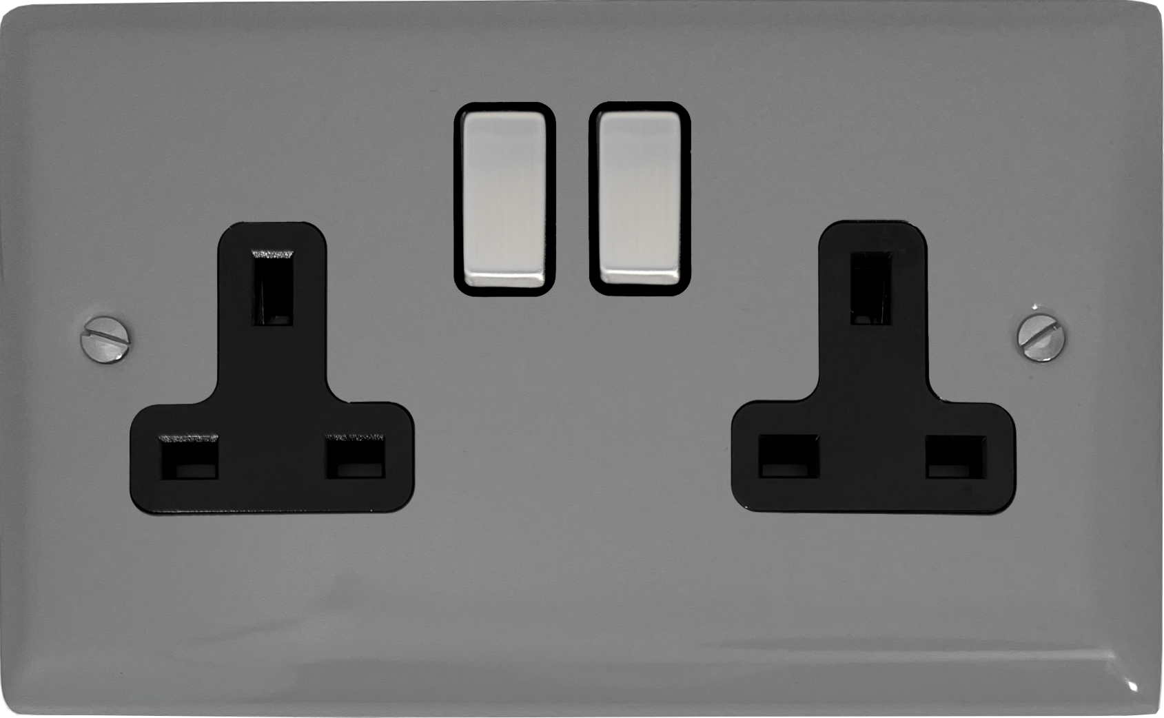Spectrum Light Grey Double Socket (Black Insert/ Metal Switches) - G+H SLG310