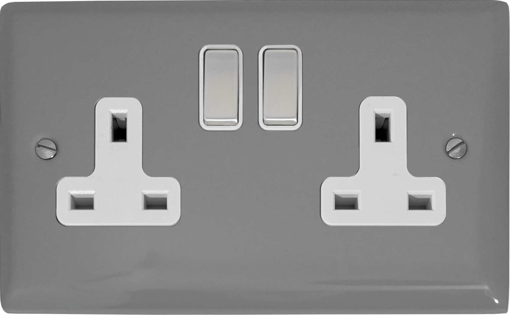 Spectrum Light Grey Double Socket (White Insert/ Metal Switches) - G+H SLG210