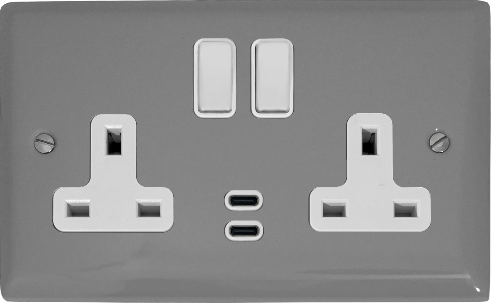 Spectrum Light Grey Double Socket with Dual USB-C (White Switches) - G+H SLG913W