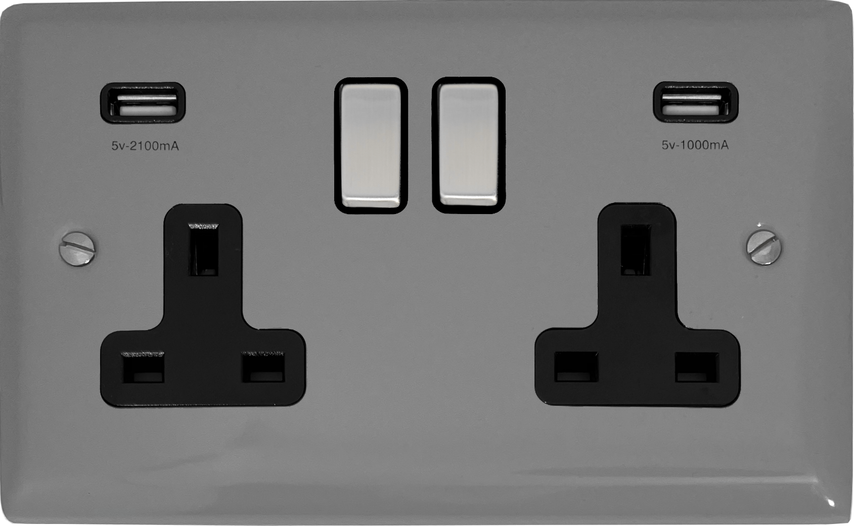 Spectrum Light Grey Double Socket with USB (Black insert/Metal Switches) - G+H SLG3910