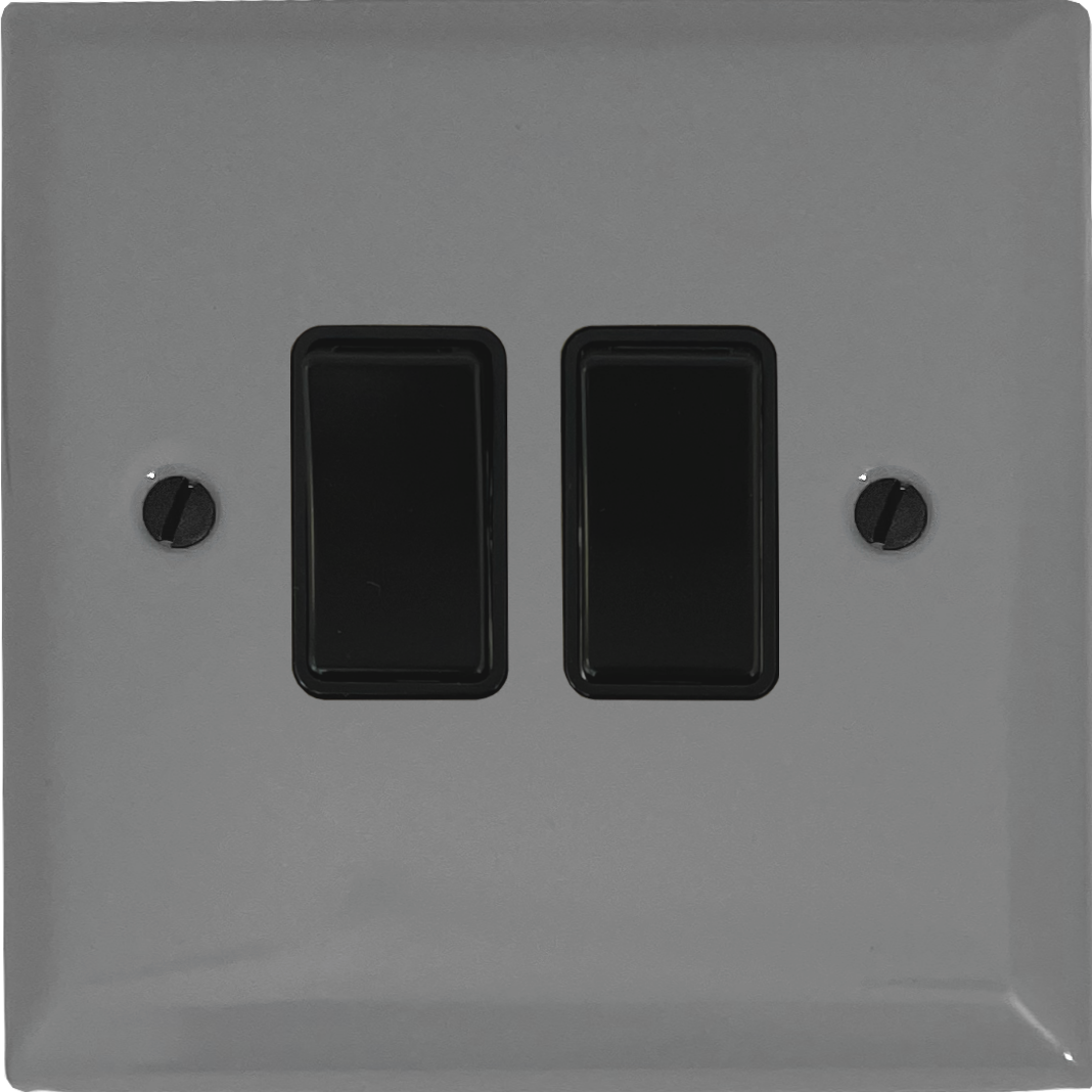 Spectrum Light Grey Light Switch (2 Gang/Black Switches) - G+H SLG2B