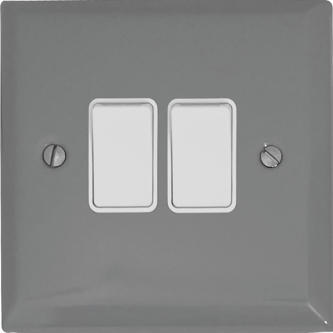 Spectrum Light Grey Light Switch (2 Gang/White Switches) - G+H SLG2W
