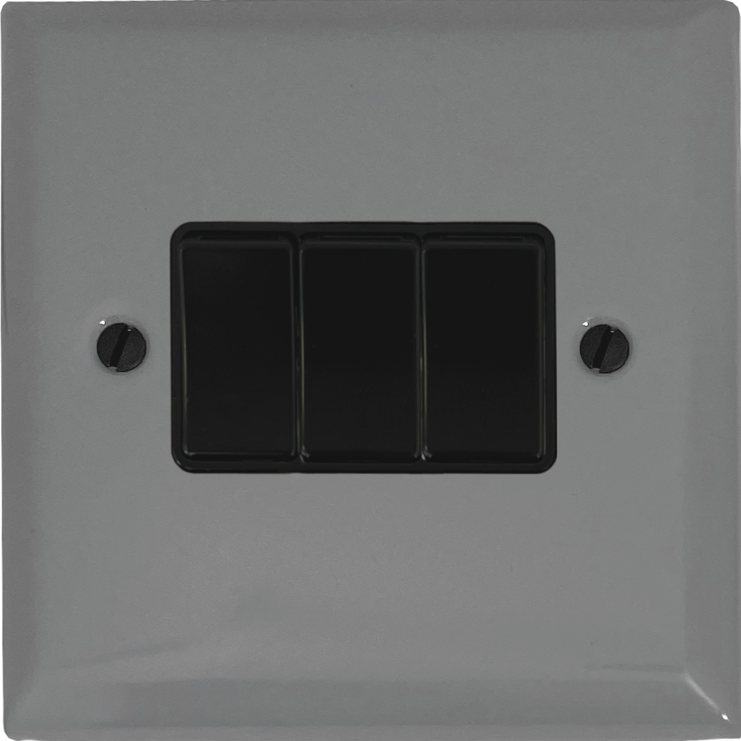 Spectrum Light Grey Light Switch (3 Gang/Black Switches) - G+H SLG3B