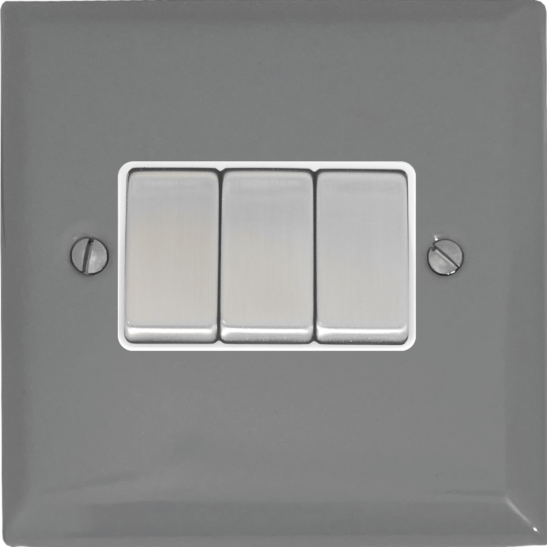 Spectrum Light Grey Light Switch (3 Gang/White insert/Metal Switches) - G+H SLG203