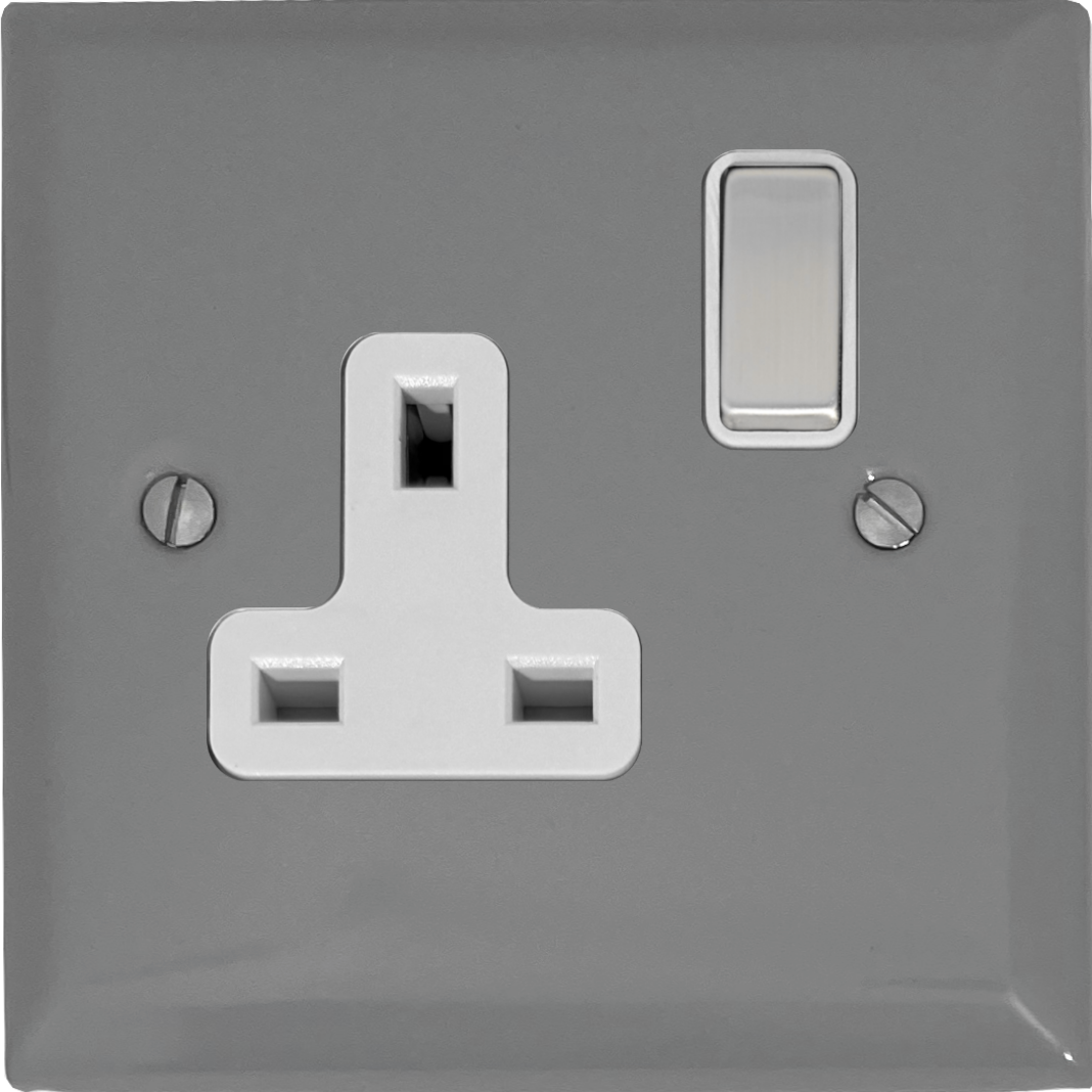 Spectrum Light Grey Single Socket (White insert/Metal Switch) - G+H SLG209