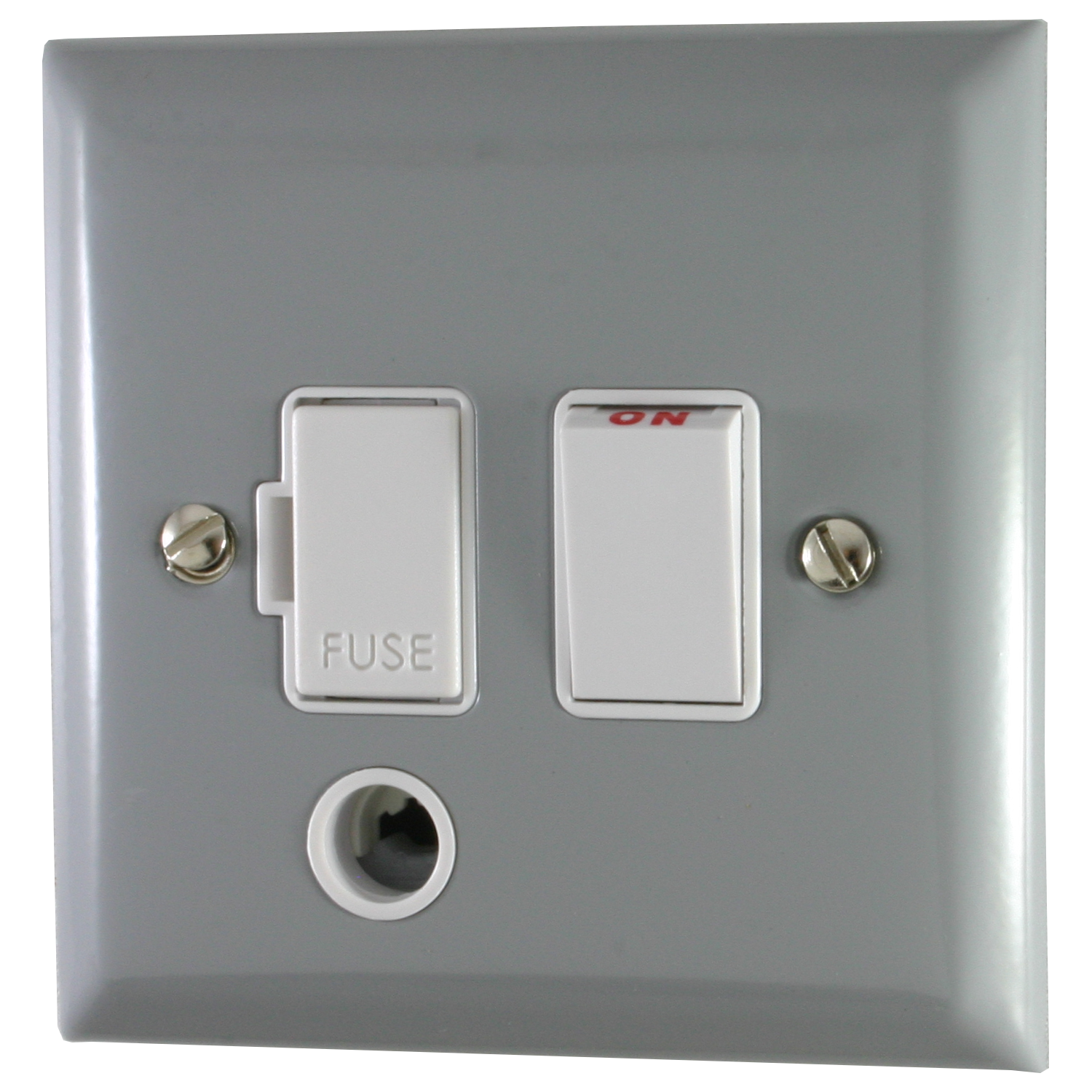 Spectrum Light Grey Switched Fused Spur with Flex Outlet (White Switch) - G+H SLG56W