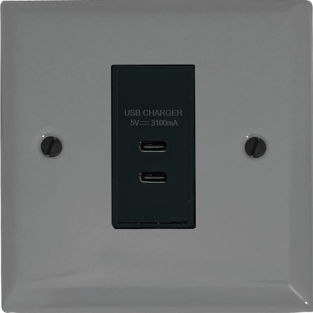 Spectrum Light Grey USB Charger (2x USB-C) (Black Insert/1 Gang) - G+H SLG42B
