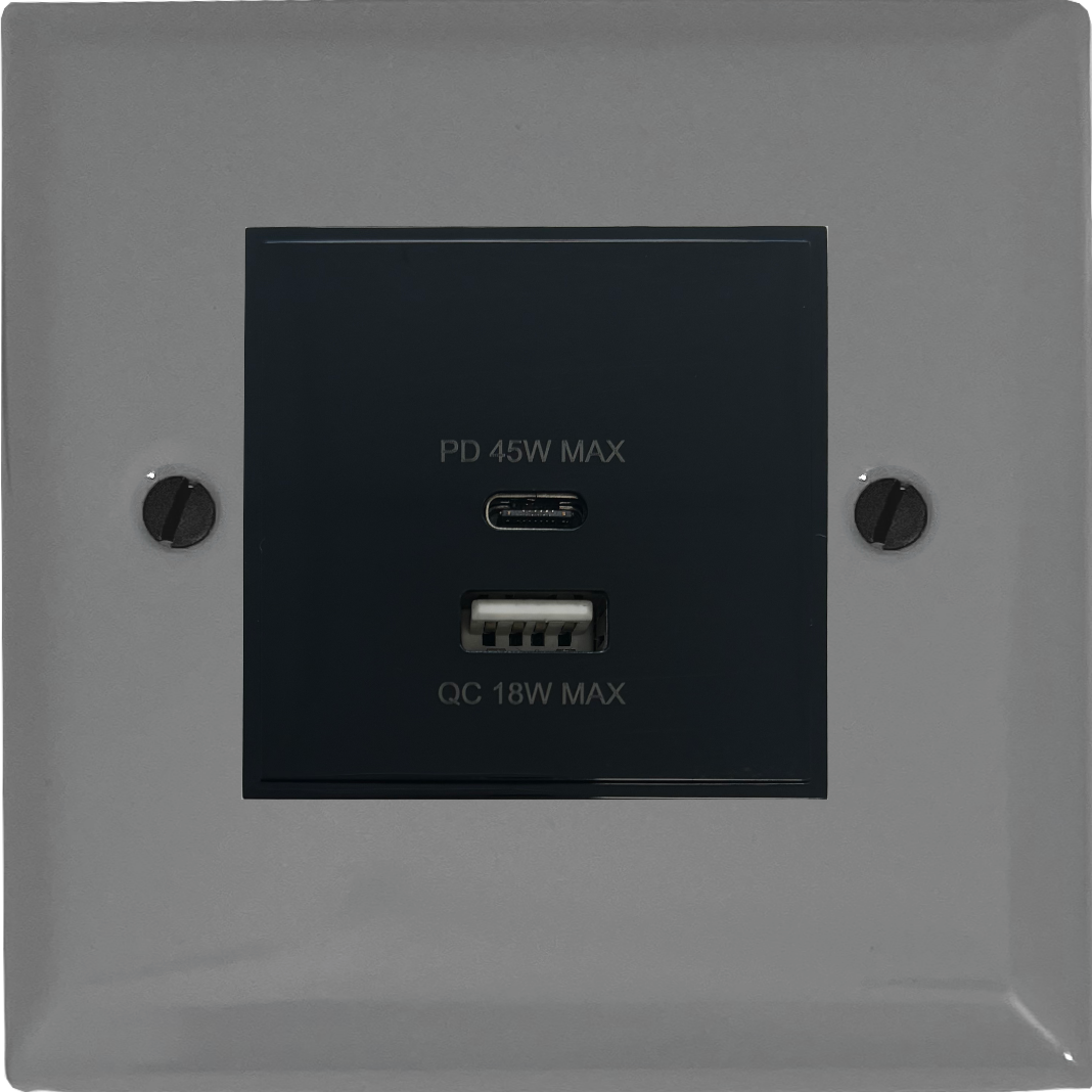 Spectrum Light Grey USB Charger (Dual USB A + C Quick Charge) (Black Insert/1 Gang) - G+H SLG43B