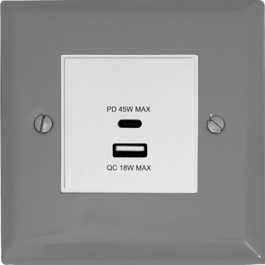 Spectrum Light Grey USB Charger (Dual USB A + C Quick Charge) (White Insert/1 Gang) - G+H SLG43W