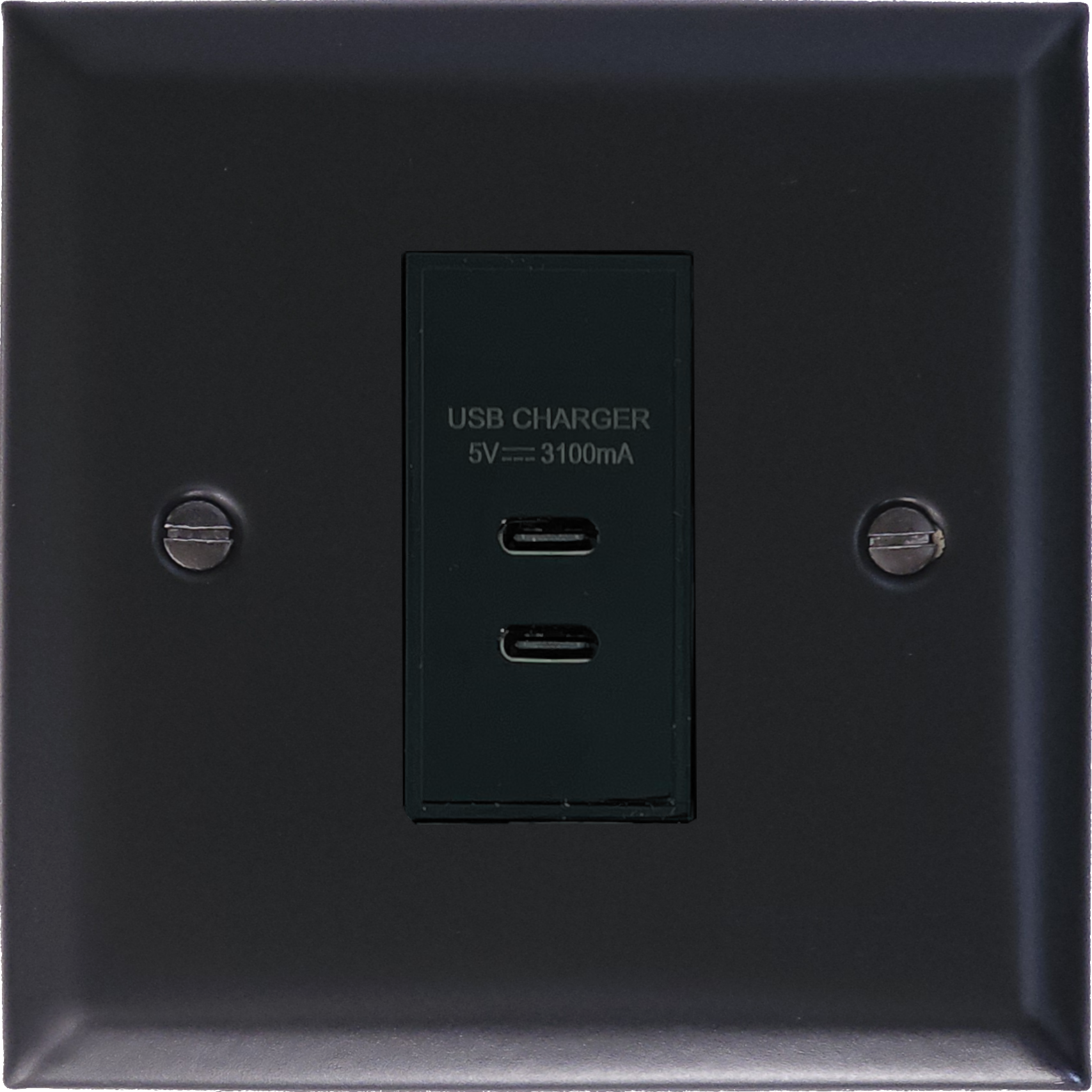 Spectrum Matt Black USB Charger (2x USB-C) (1 Gang) - G+H SFB42B