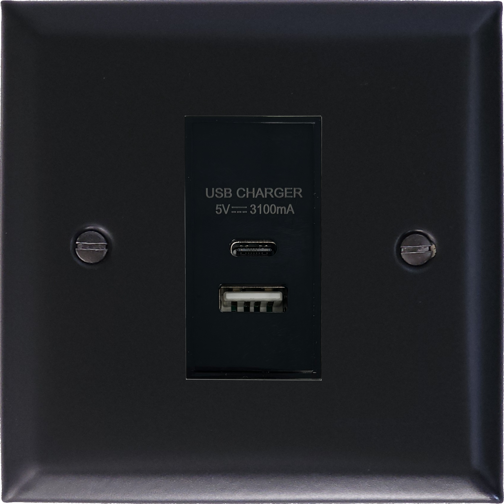 Spectrum Matt Black USB Charger (USB-A and USB-C) - G+H SFB41B