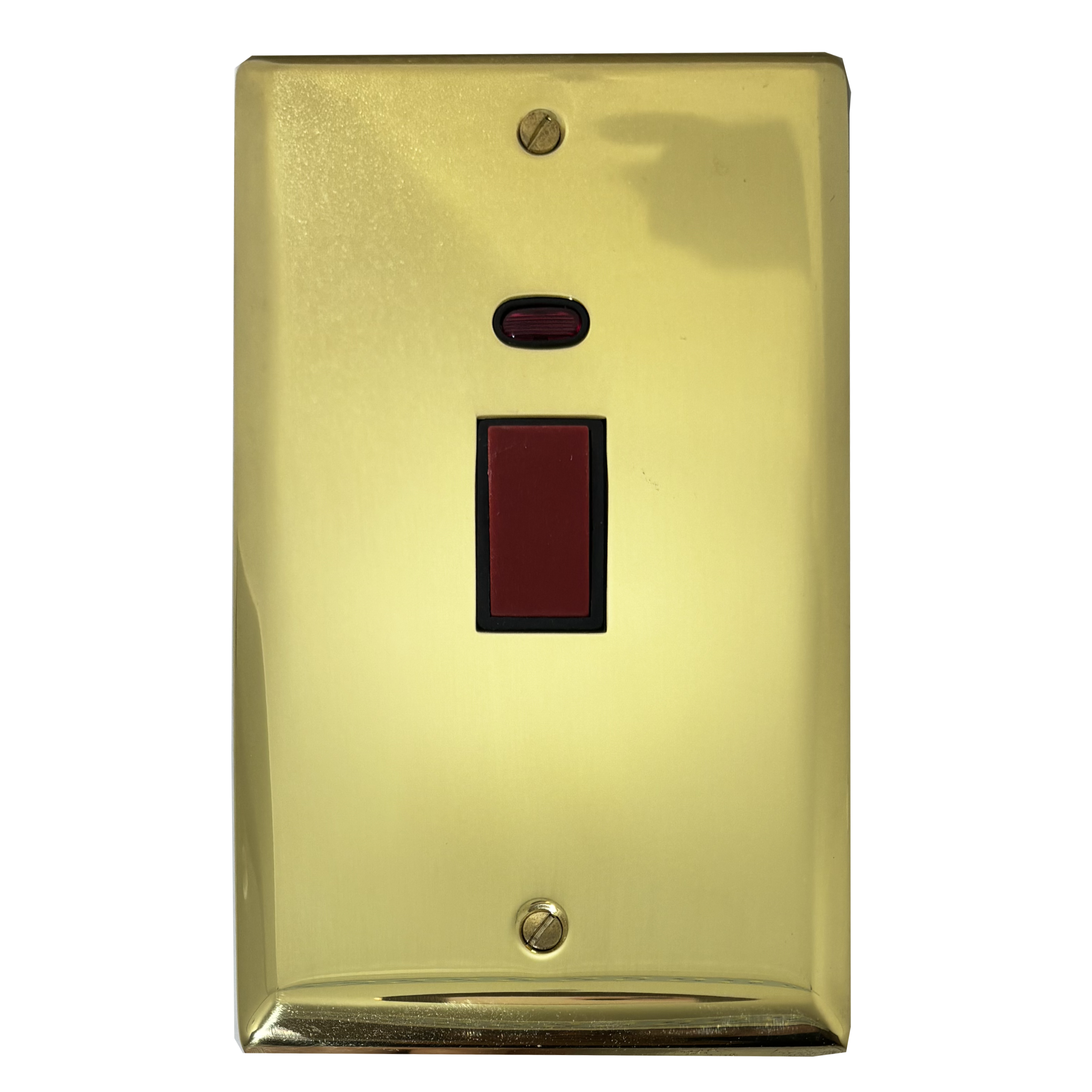 Spectrum Polished Brass 45A DP Switch with Neon (Black Insert/Vertical Plate) - G+H SB28B