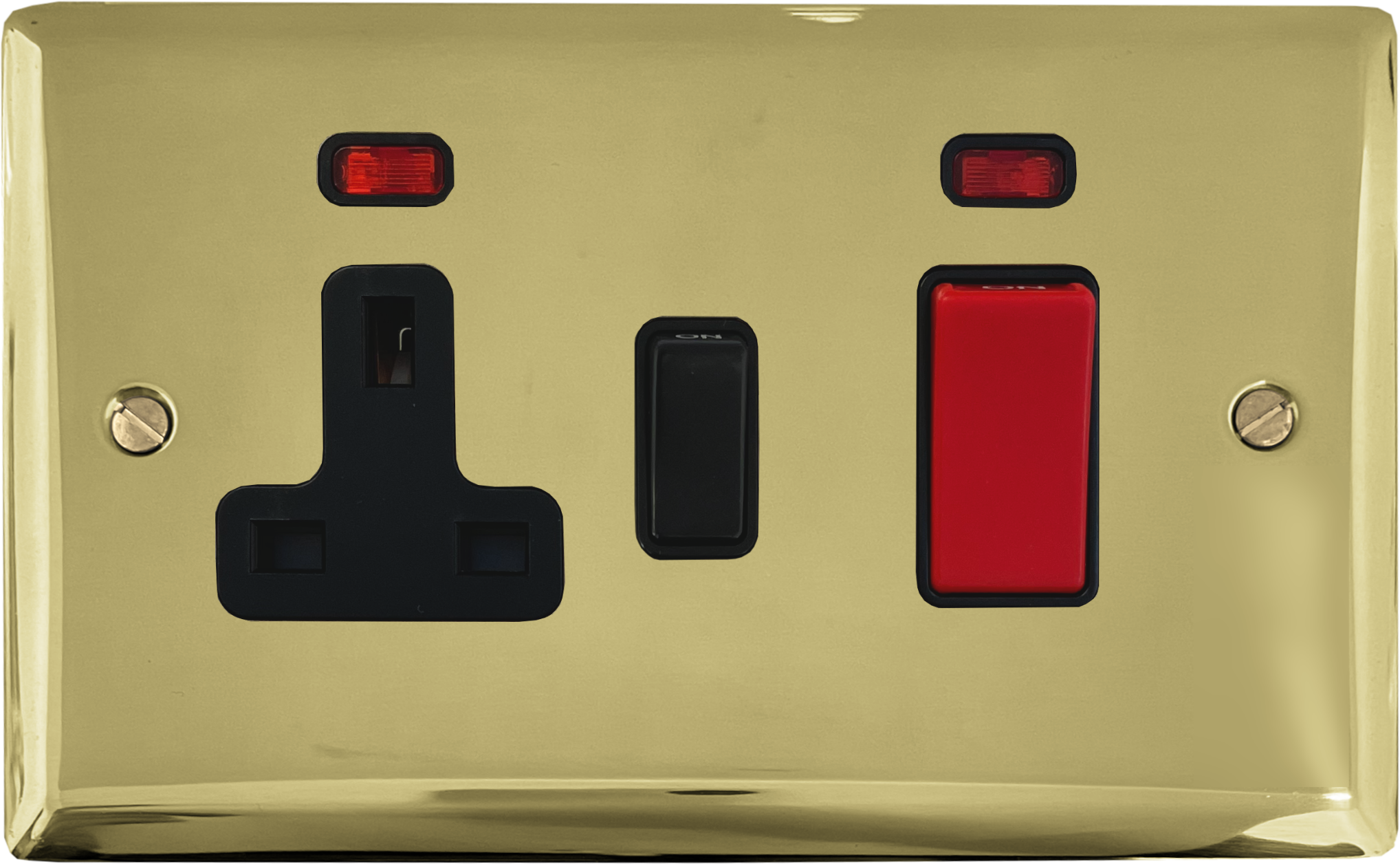 Spectrum Polished Brass Cooker Switch with Socket (Black Switch) - G+H SB29B