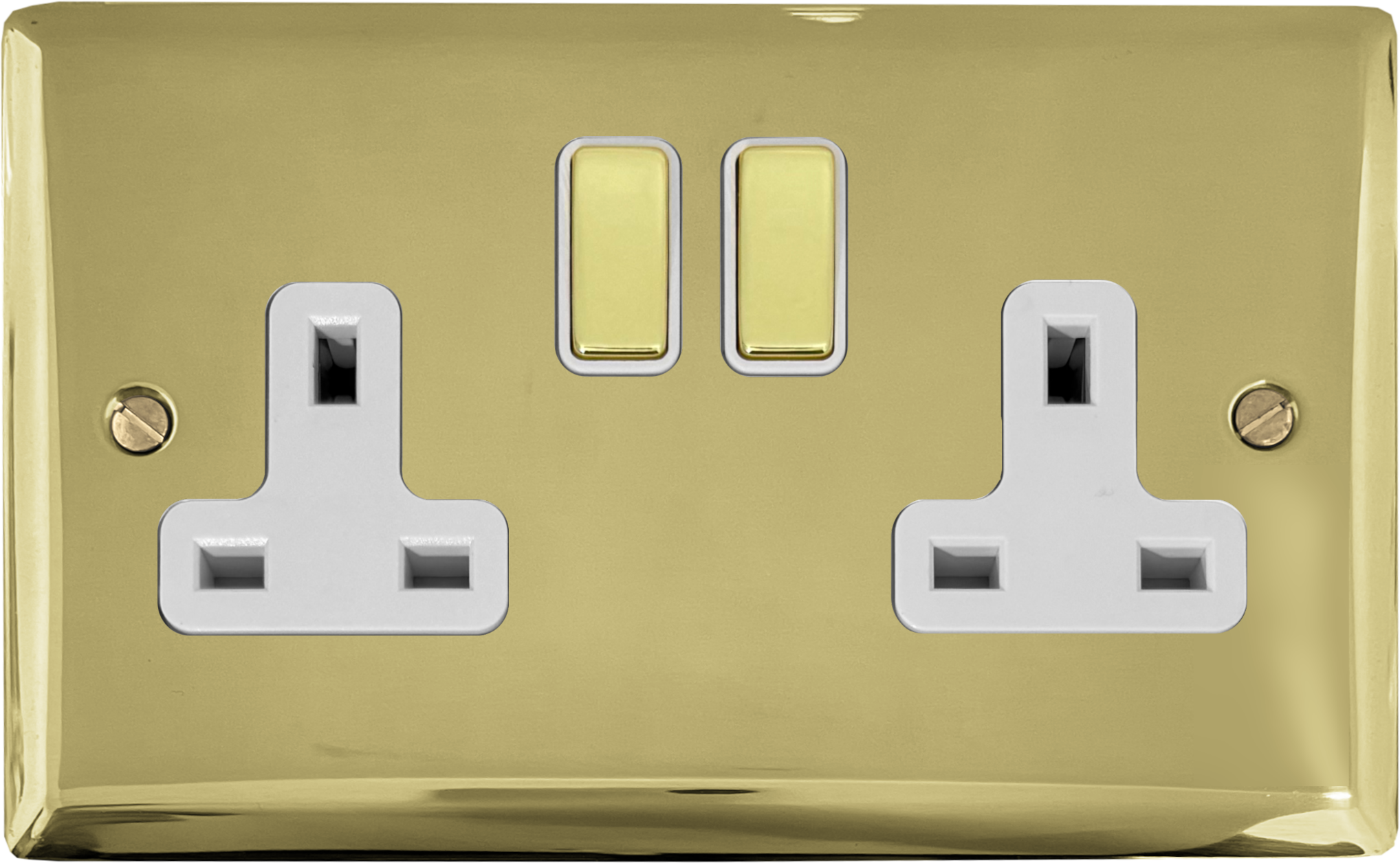 Spectrum Polished Brass Double Socket (Brass Switches/White Inserts) - G+H SB210