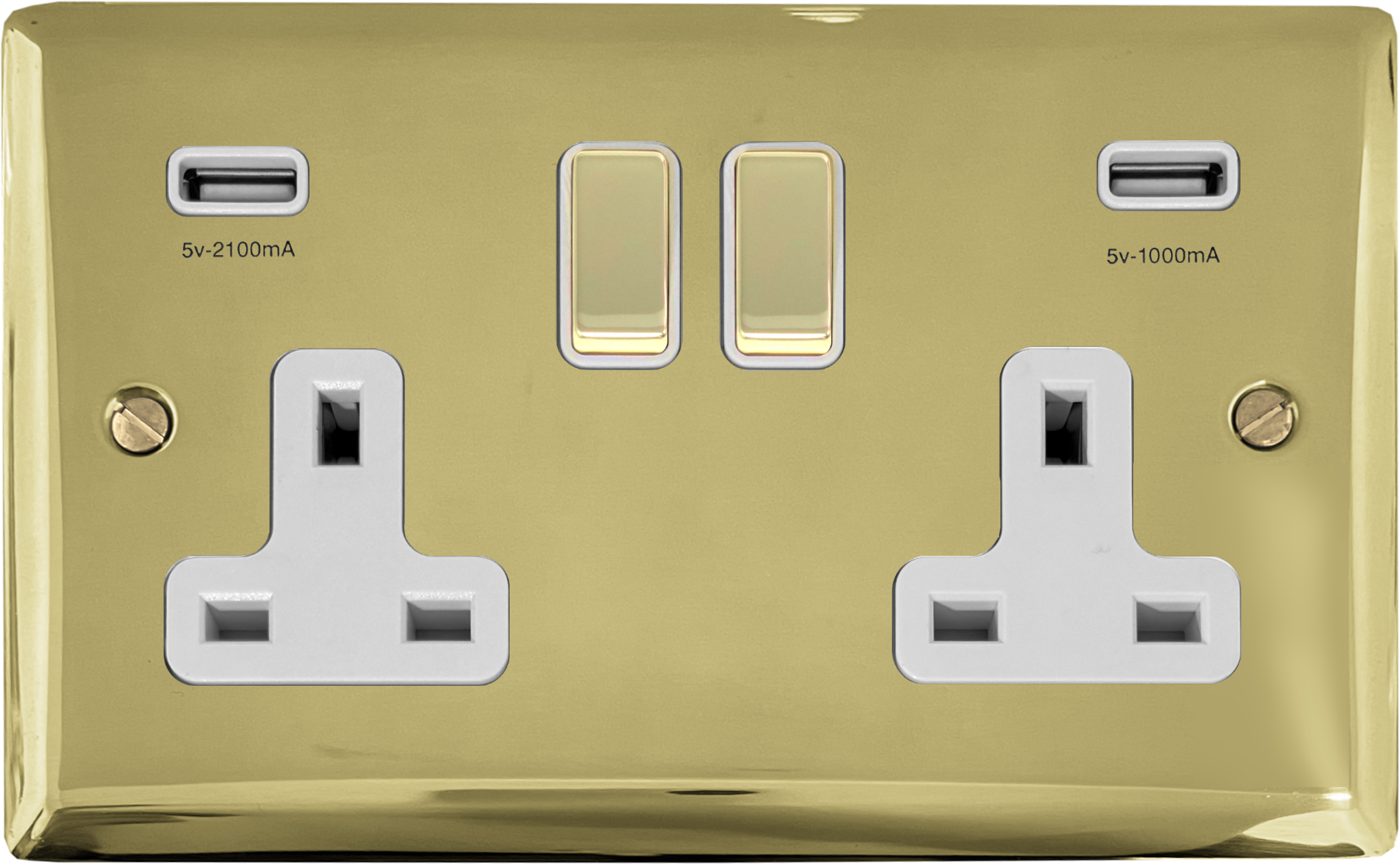 Spectrum Polished Brass Double Socket with USB (Brass Switches/White Inserts) - G+H SB2910
