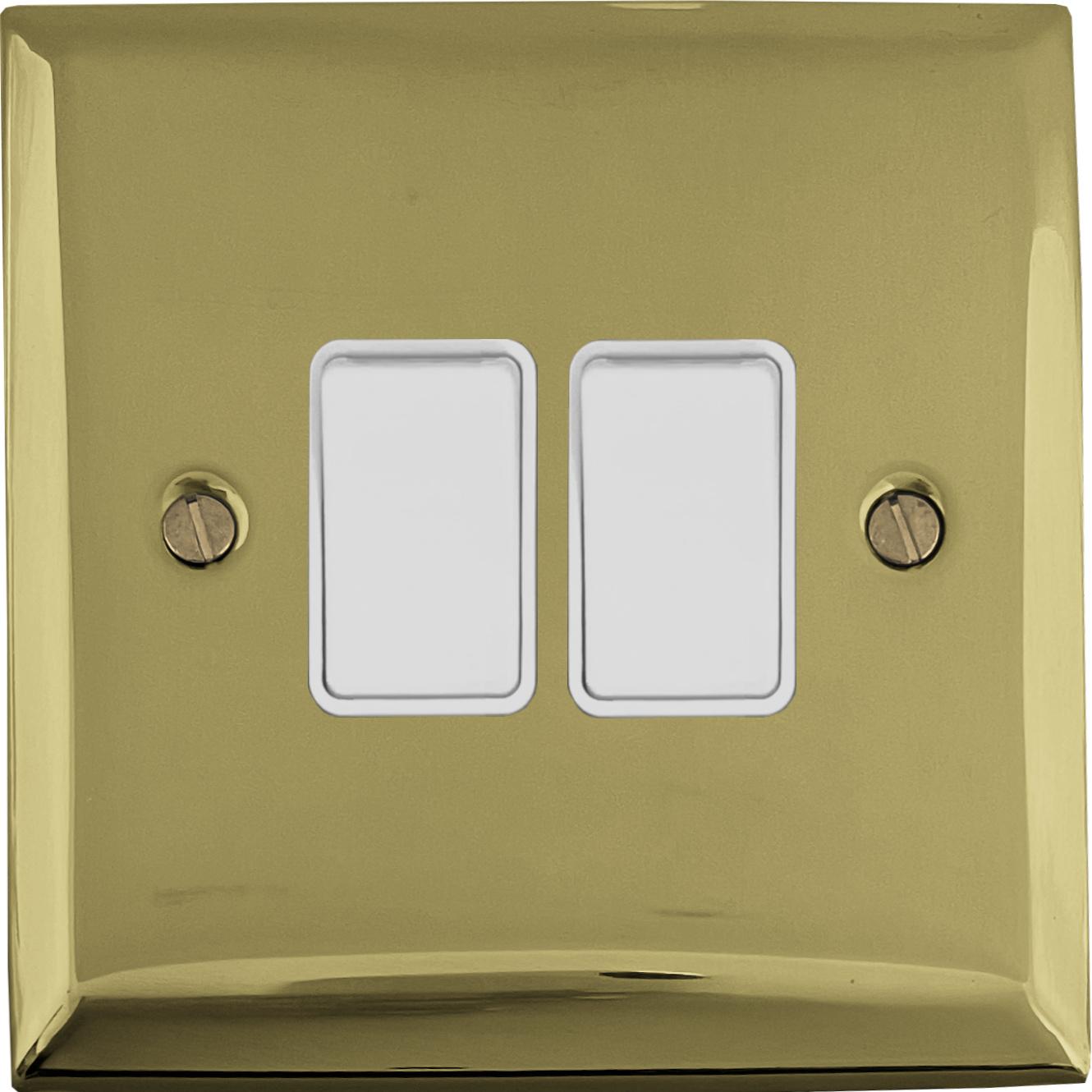 Spectrum Polished Brass Light Switch (2 Gang/White Switches) - G+H SB2W