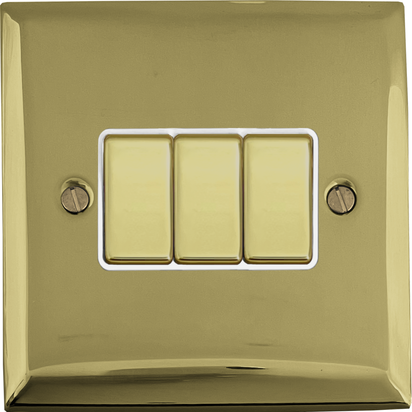 Spectrum Polished Brass Light Switch (3 Gang/Brass Switches/White Inserts)