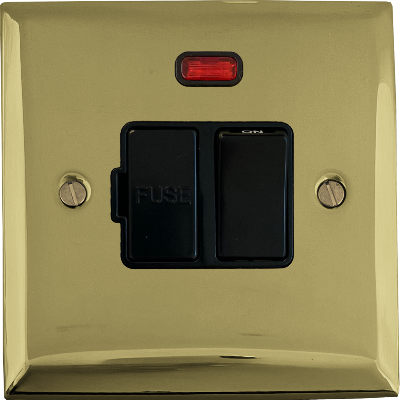 Spectrum Polished Brass Switched Fused Spur with Neon (Black Switch) - G+H SB27B