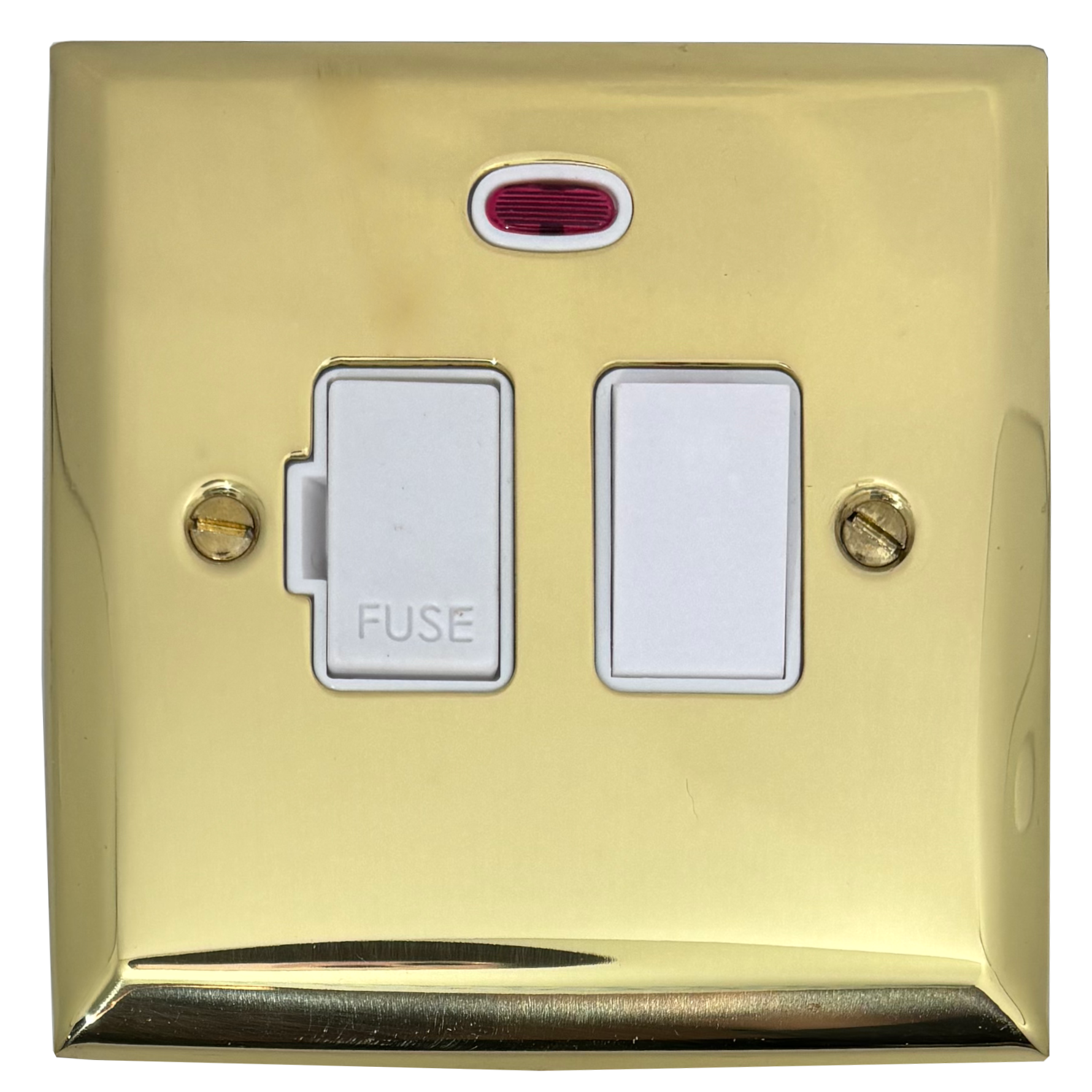 Spectrum Polished Brass Switched Fused Spur with Neon (White Switch) - G+H SB27W