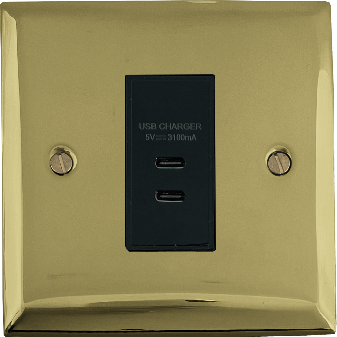 Spectrum Polished Brass USB Charger (2x USB-C) (1 Gang/Black Insert) - G+H SB42B