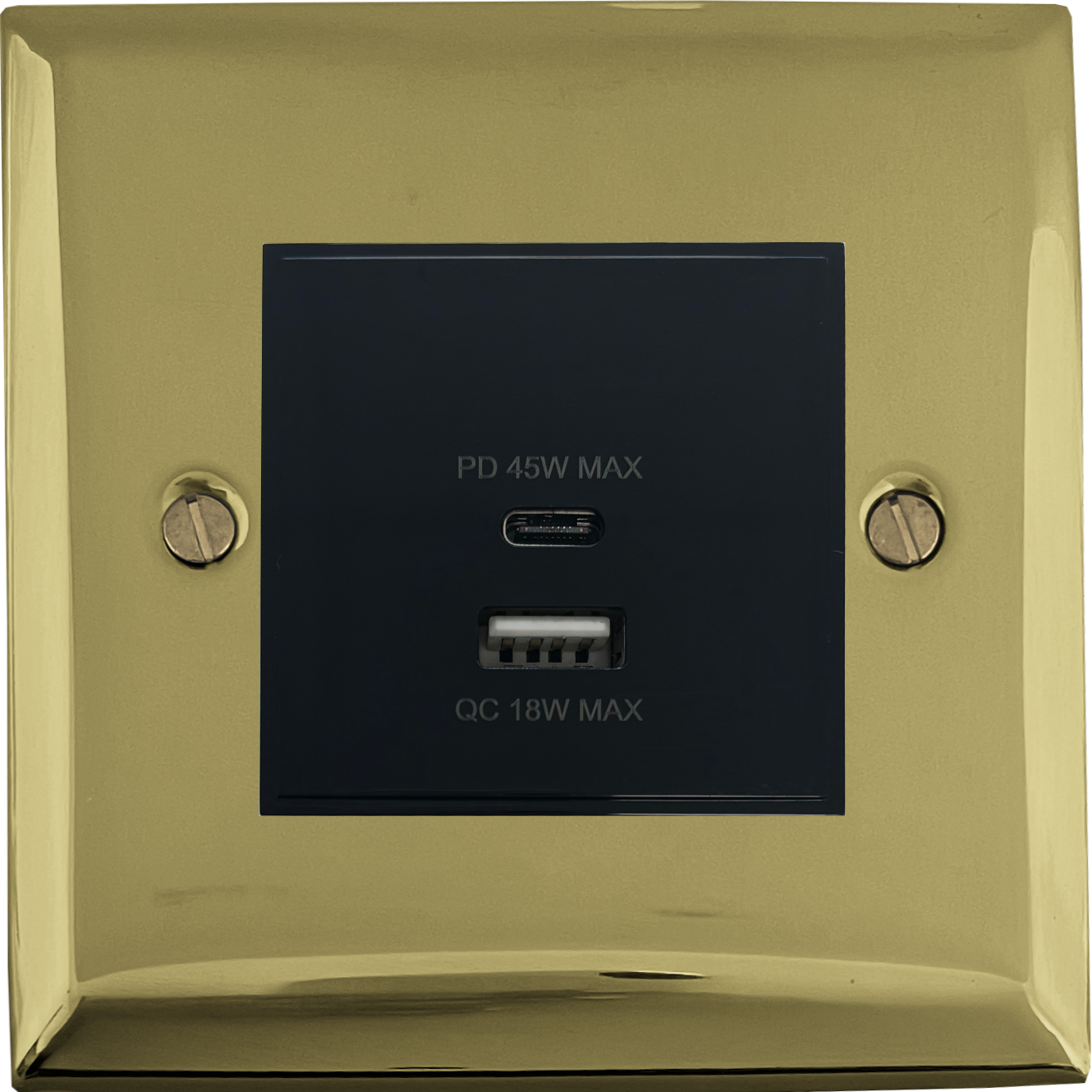 Spectrum Polished Brass USB Charger (Dual USB A + C Quick Charge) (1 Gang/Black Insert) - G+H SB43B