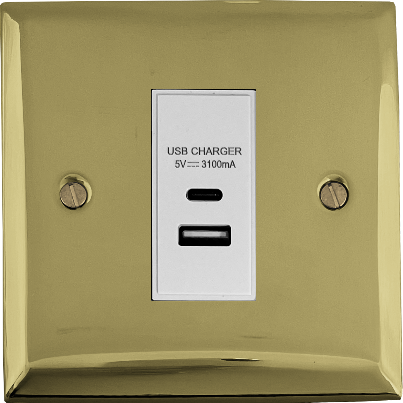 Spectrum Polished Brass USB Charger (USB-A and USB-C) (1 Gang/White Insert) - G+H SB41W