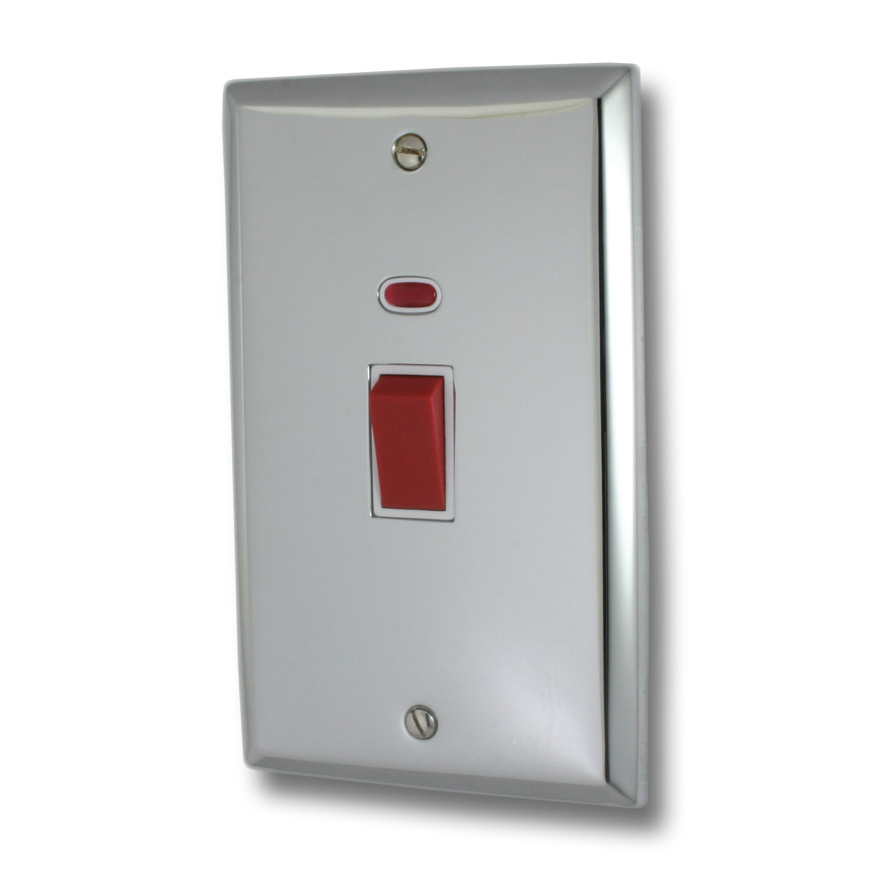 Spectrum Polished Chrome 45 Amp Double Cooker Switch (White Insert) - G+H SC28W